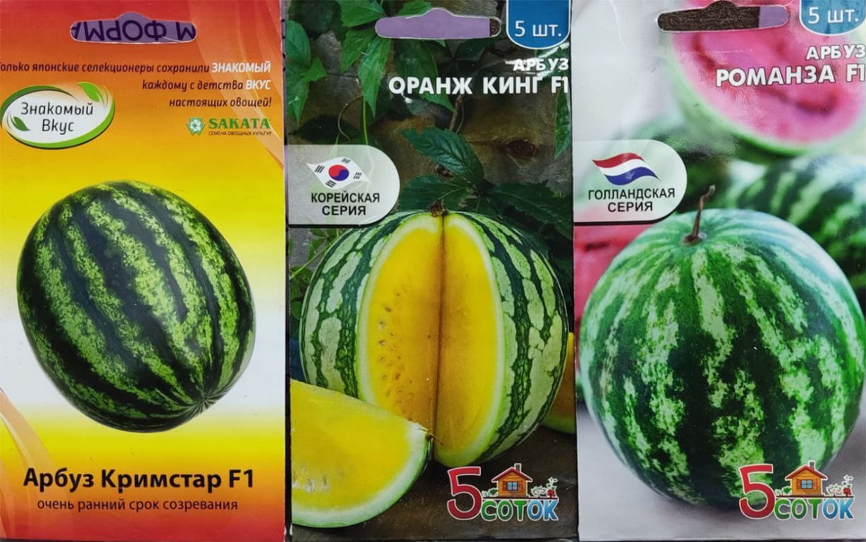 «ЭЛЬ УАФИ» F1 — очень ранний гибрид фирмы Sakata. Мякоть ярко-красная, сахарная, очень сладкого вкуса, плоды весом 8–10 кг. «КРИМСТАР» F1 — это самый ранний крупноплодный арбуз для Гродненской области. Достигает веса более 10 кг. Вкусовые качества настолько высокие, что в него влюбляются с первой съеденной дольки.