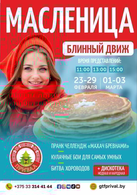 Так, первые представления на «Привале» пройдут уже в эти выходные. С 23 по 29 февраля, а также с 1 по 3 марта гостей ждет развлекательная программа: блинный движ, битва на бревнах, кулачные бои, дискотека и битва хороводов.