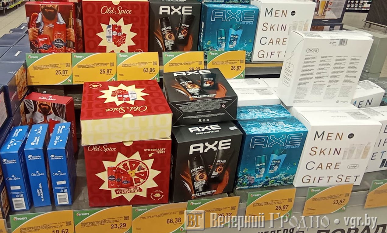 В популярном среди гродненцев гипермаркете выбор скромный. Из предложенных вариантов — только наборы косметики, гели для душа и шампуни.