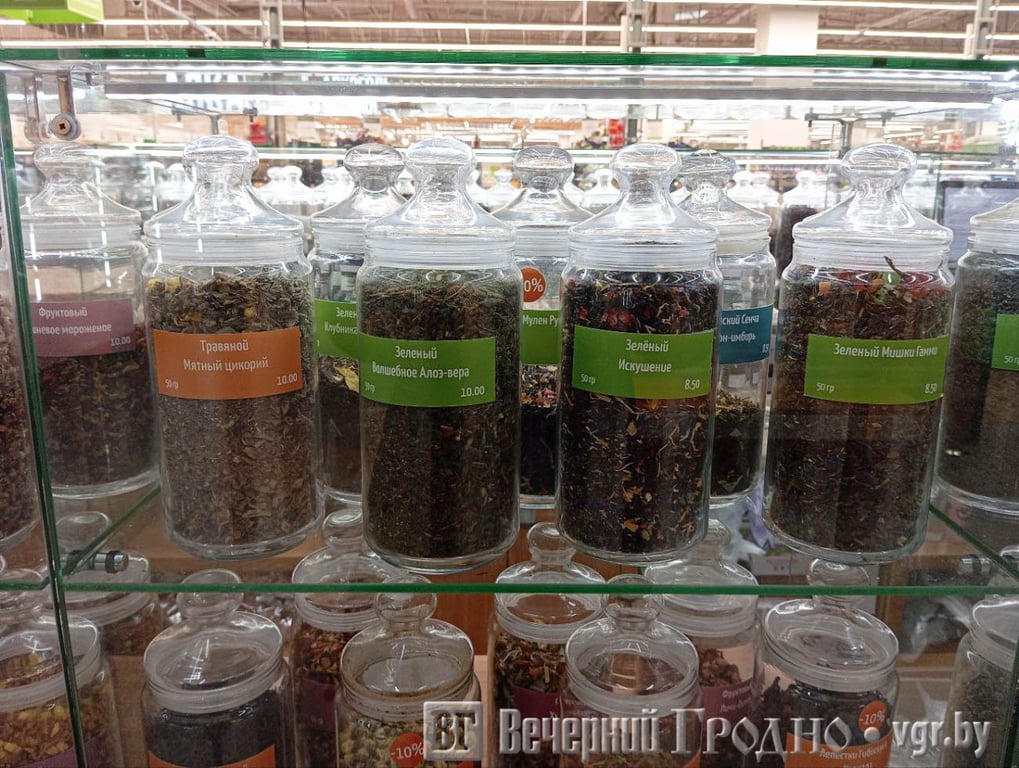 Если ваш мужчина любитель чая — напротив «Евроопта» есть островок с самыми разными добавками. 50 граммов стоит в районе 10 рублей. Выберите несколько разных вкусов, красиво упакуйте — и подарок готов. А если мужчина еще и сладкоежка, то рядом можно прикупить коробочку шоколадных пирожных за 25 рублей.