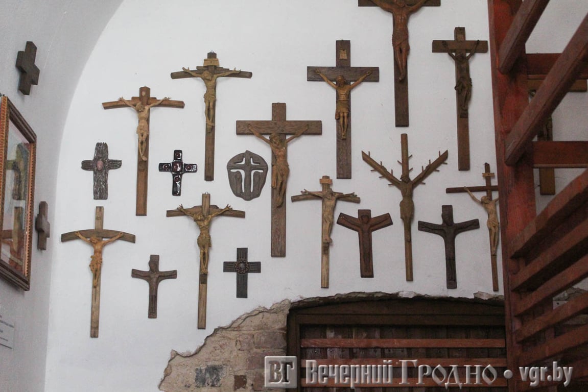 Во дворе костела в помещении бывшего гаража сделали помещение три в одном: лавка, галерея и музей. Здесь хранятся предметы, которые нашли во время реставрации костела, а также картины художников и продукция, сделанная прихожанами и волонтерами.