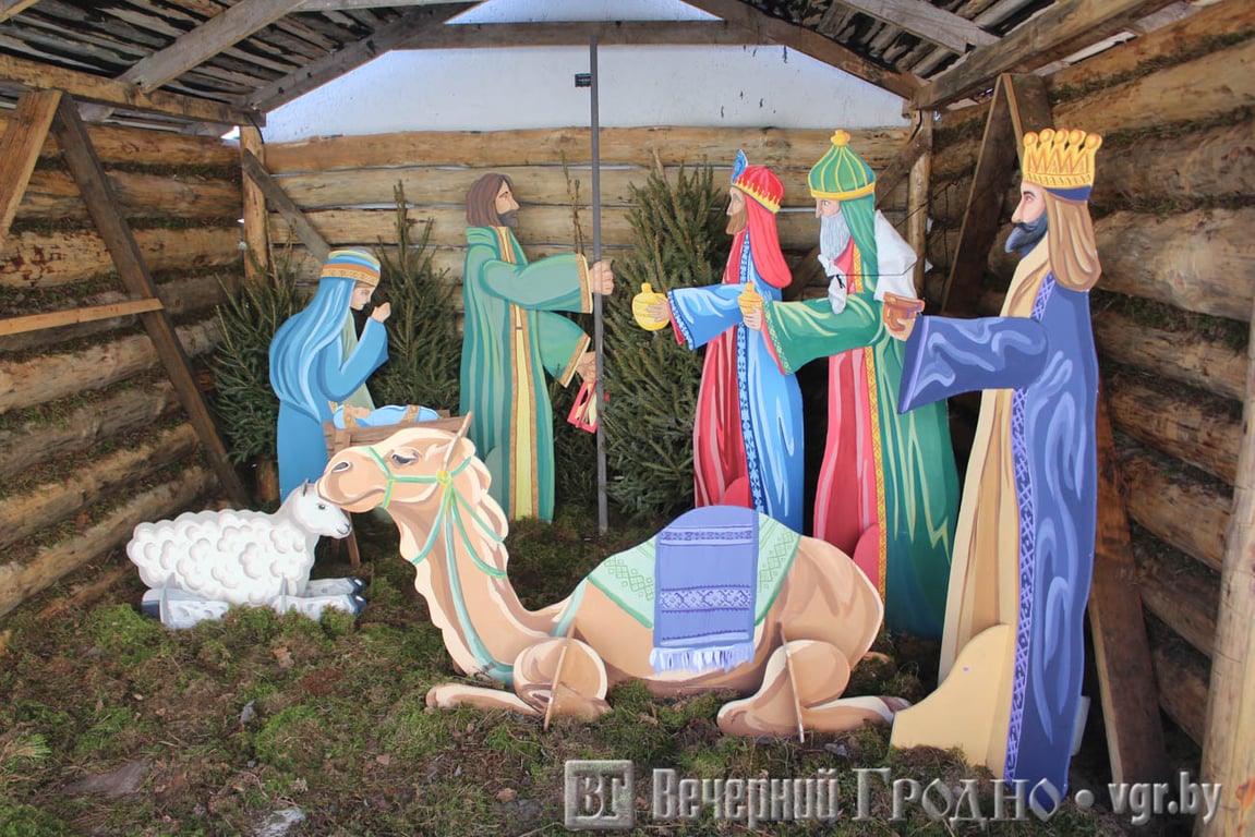 Мы идем по территории, ксендз Виталий показывает батлейку. Все фигурки сделаны вручную детьми из школы искусств Новогрудка.
