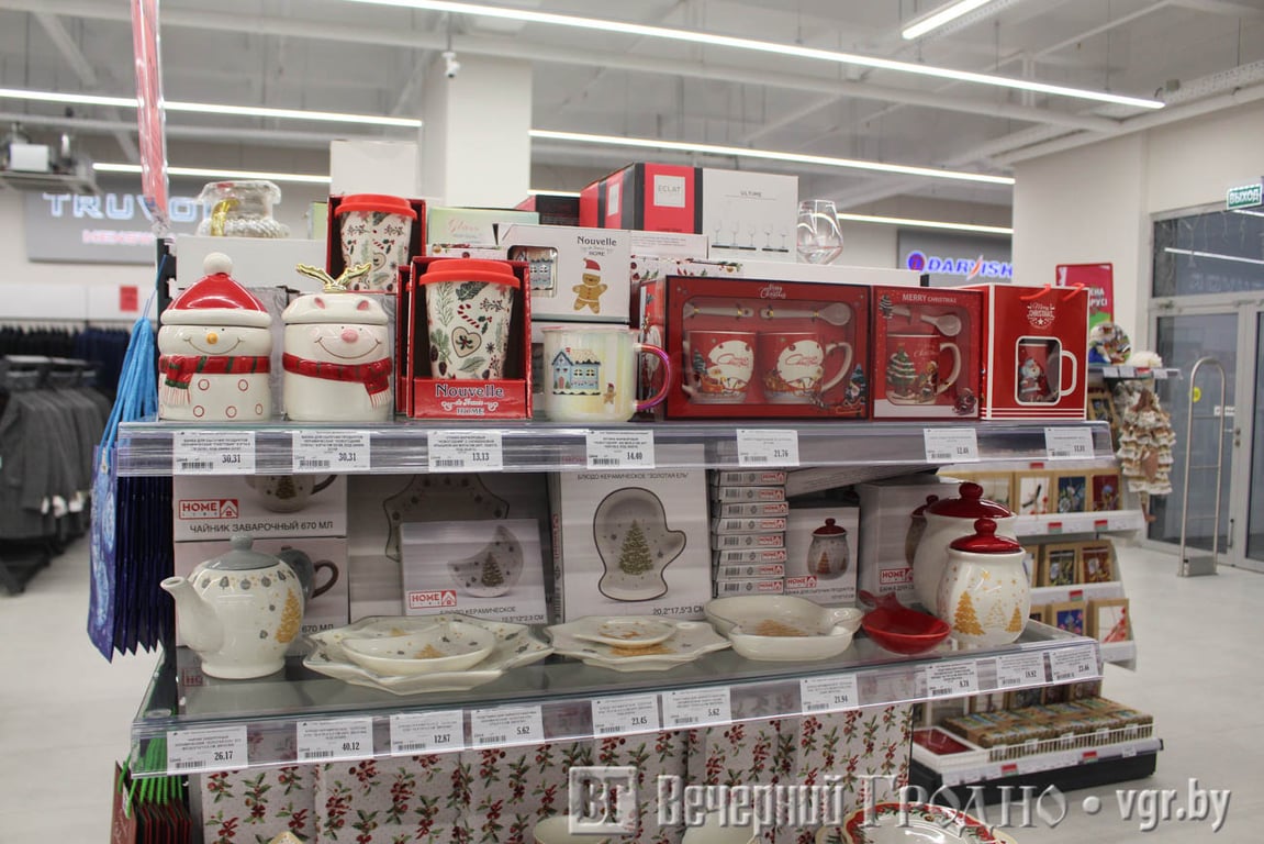 На первом этаже нового корпуса расположились уже знакомые гродненцам магазины «Мегатоп», рядом с ним будет OZ (открытие — в январе), при входе разместится «Макей» (открытие — в январе). Появились новые торговые точки — магазин белорусской косметики «Белита Витэкс» и ювелирный «7 карат». Тут же будет павильон по продаже сувениров, необычных предметов интерьера и подарков, изделий из фарфора белорусского бренда «Фавор».