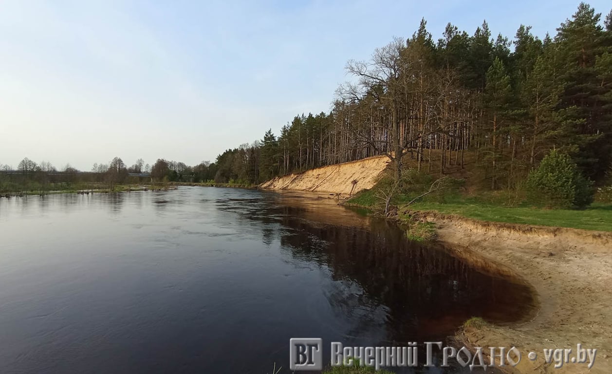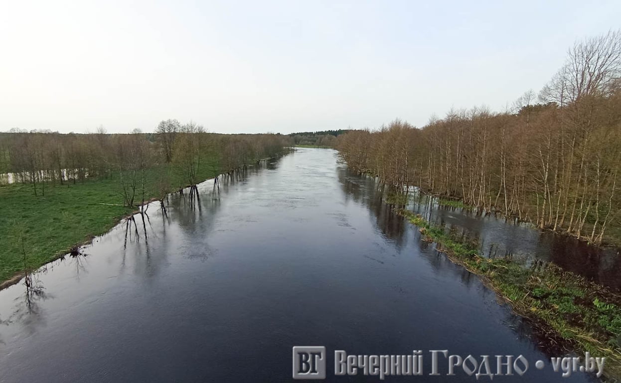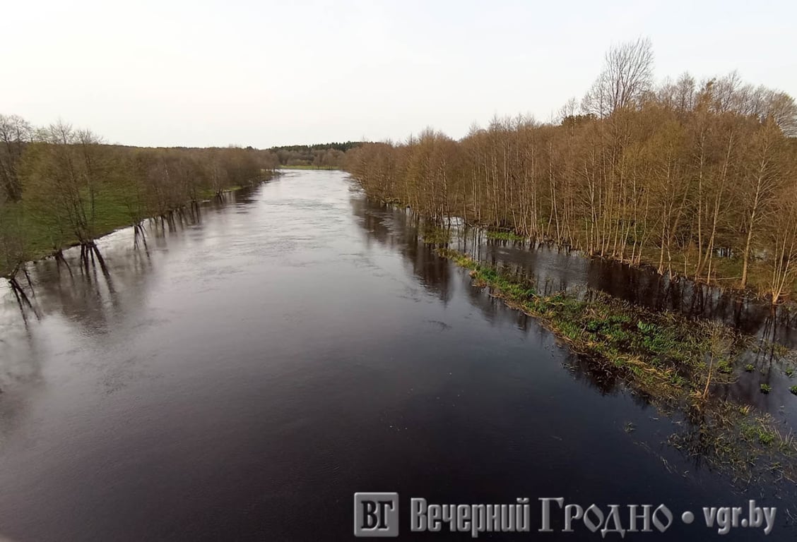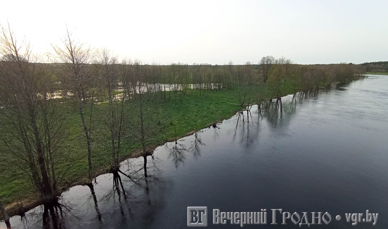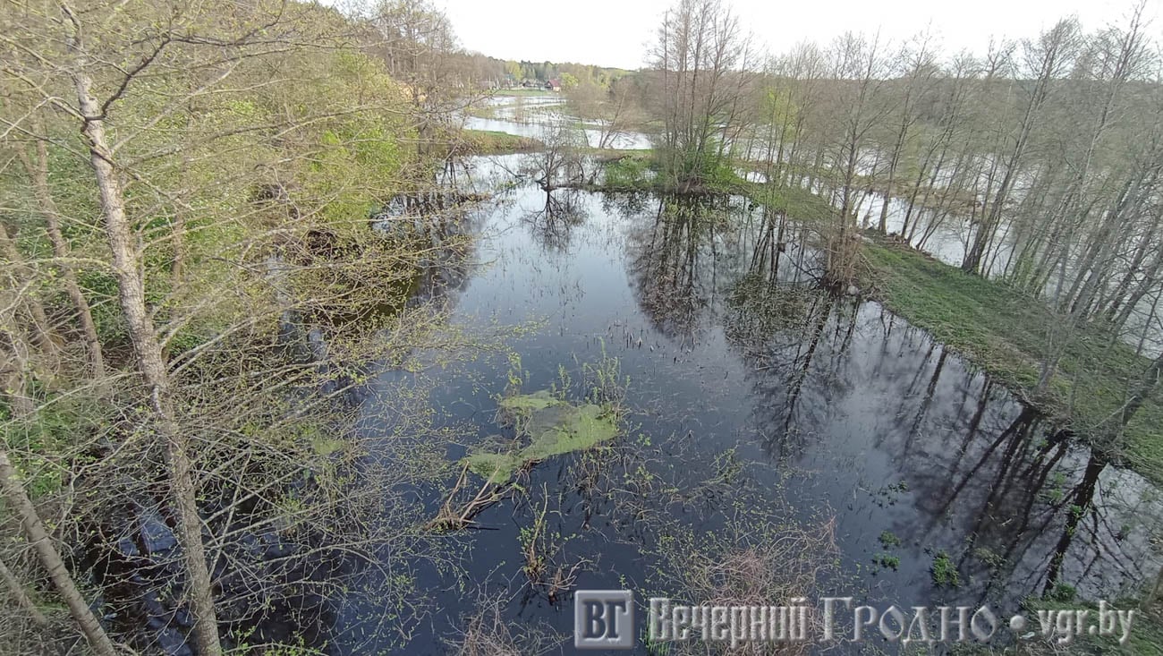 Мы побывали на Щаре в месте, где она разделяет Мостовский и Дятловский районы. С моста видно, как река затопила прибрежную зону.