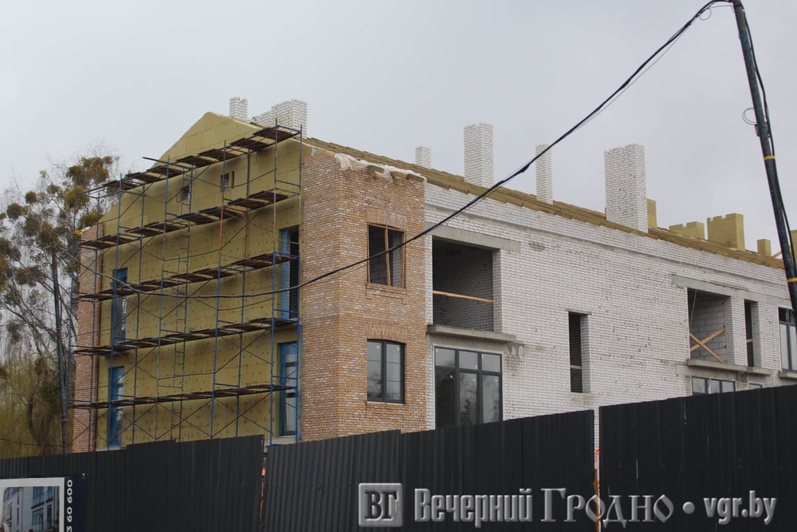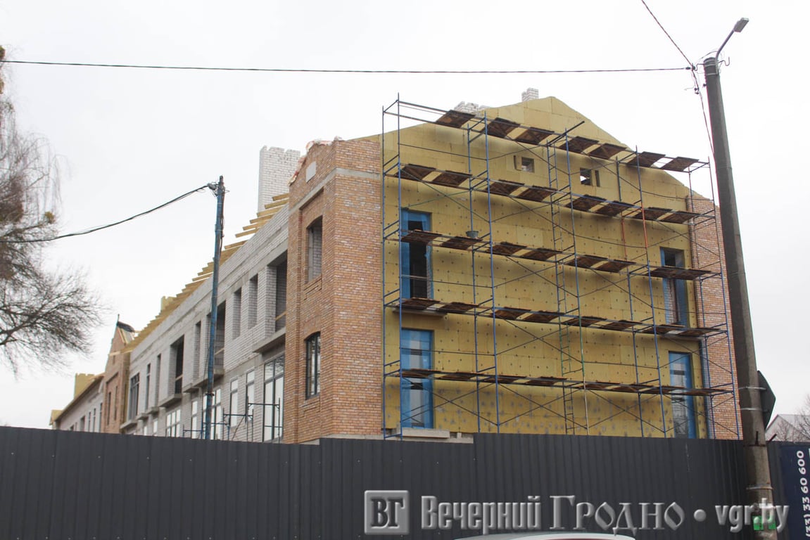 Сейчас уже готова коробка трехэтажного здания по адресу Щорса, 2. Сейчас ведутся работы по остеклению фасада.