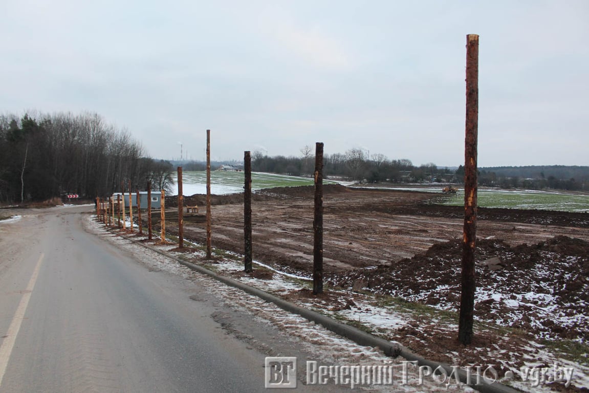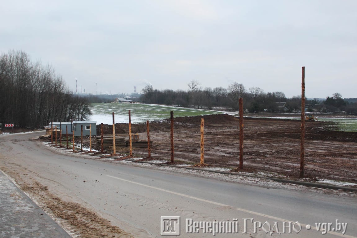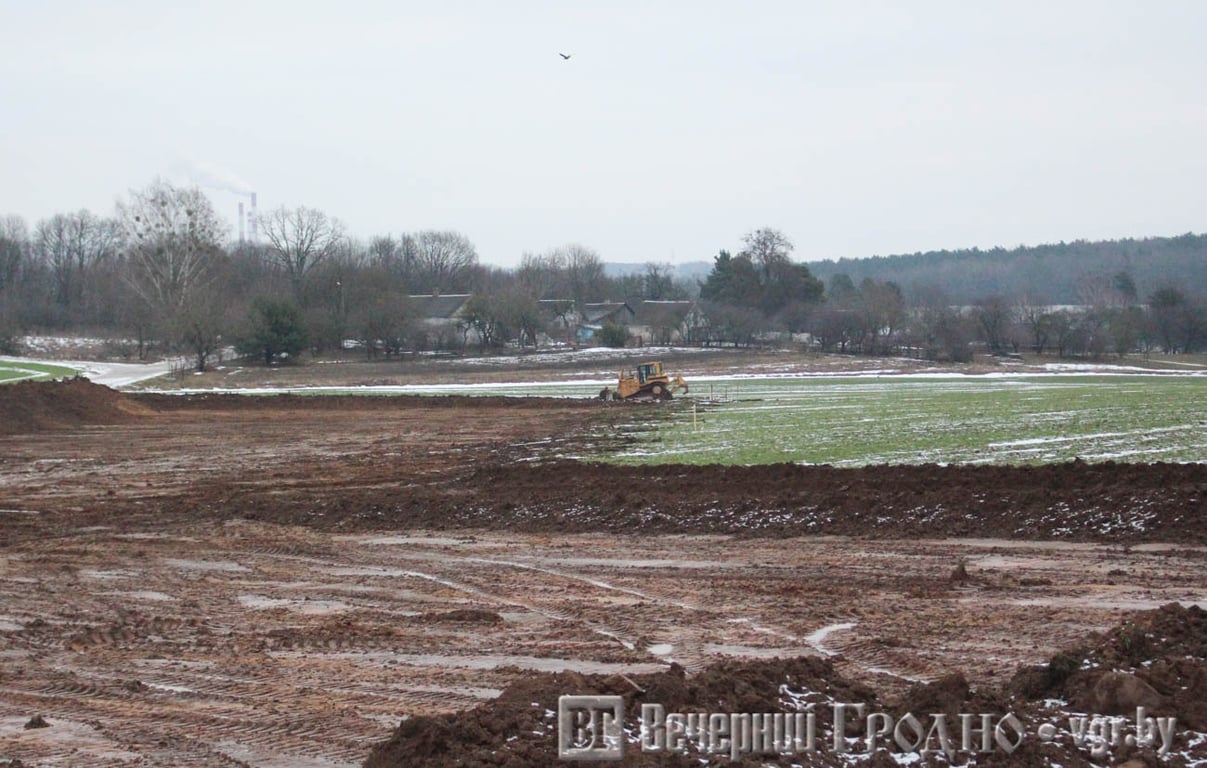 На выходных рабочие начали устанавливать столбы для ограждения, а на поле появилась техника, которая снимает грунт.