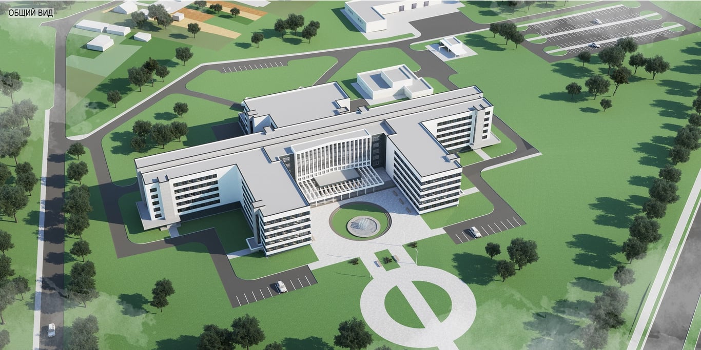 Здесь начнется строительство городской клинической больницы. Само здание будет пятиэтажным, плюс подвал и технический этаж. Больница будет состоять из двух блоков: первый — это палаты и отделения, второй — приемное отделение.