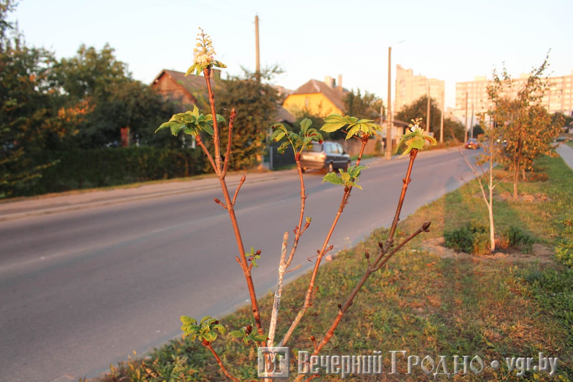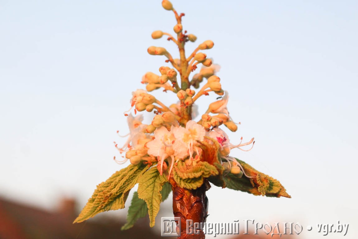 Небольшой каштан зацвел на улице Щорса. Об этом нам рассказала наша постоянная читательница Ядвига Матусевич. Пожилая женщина много лет высаживает на улице цветы и деревья, а также ухаживает за ними.