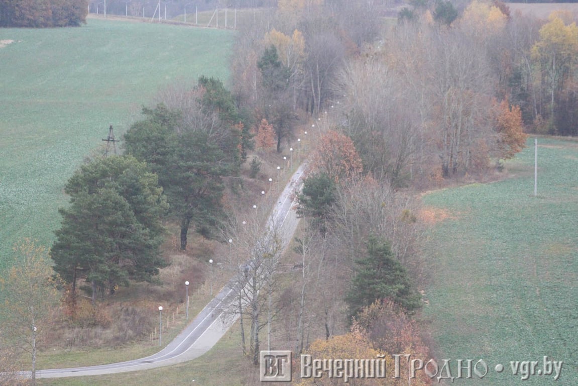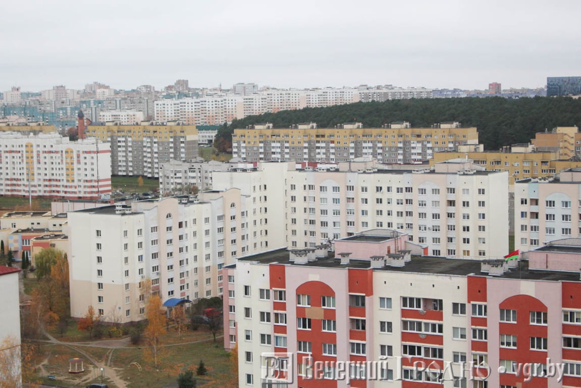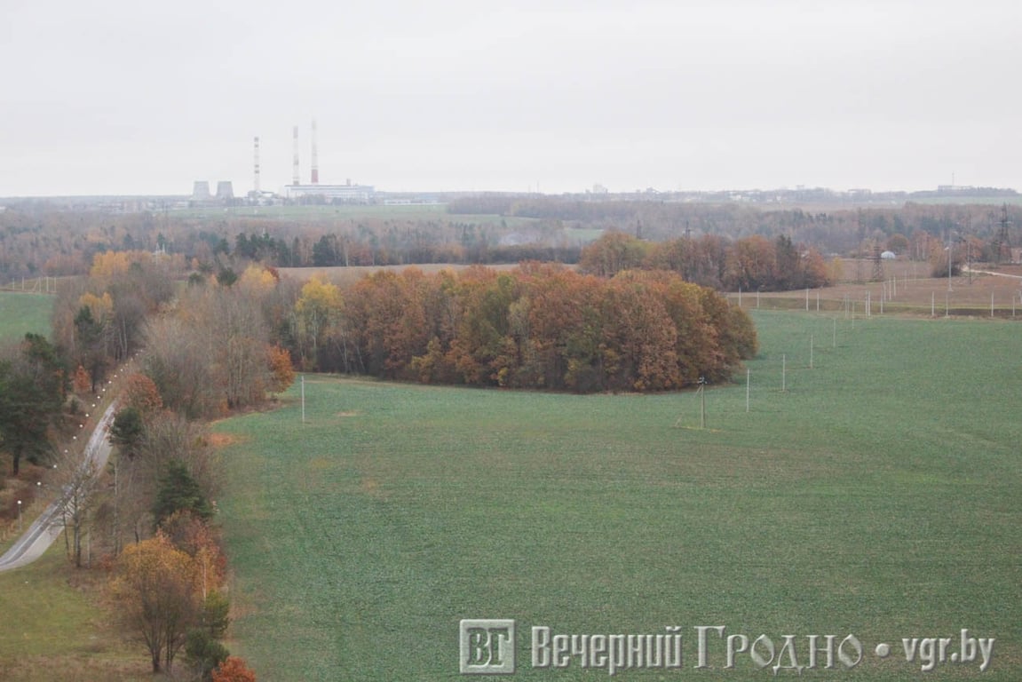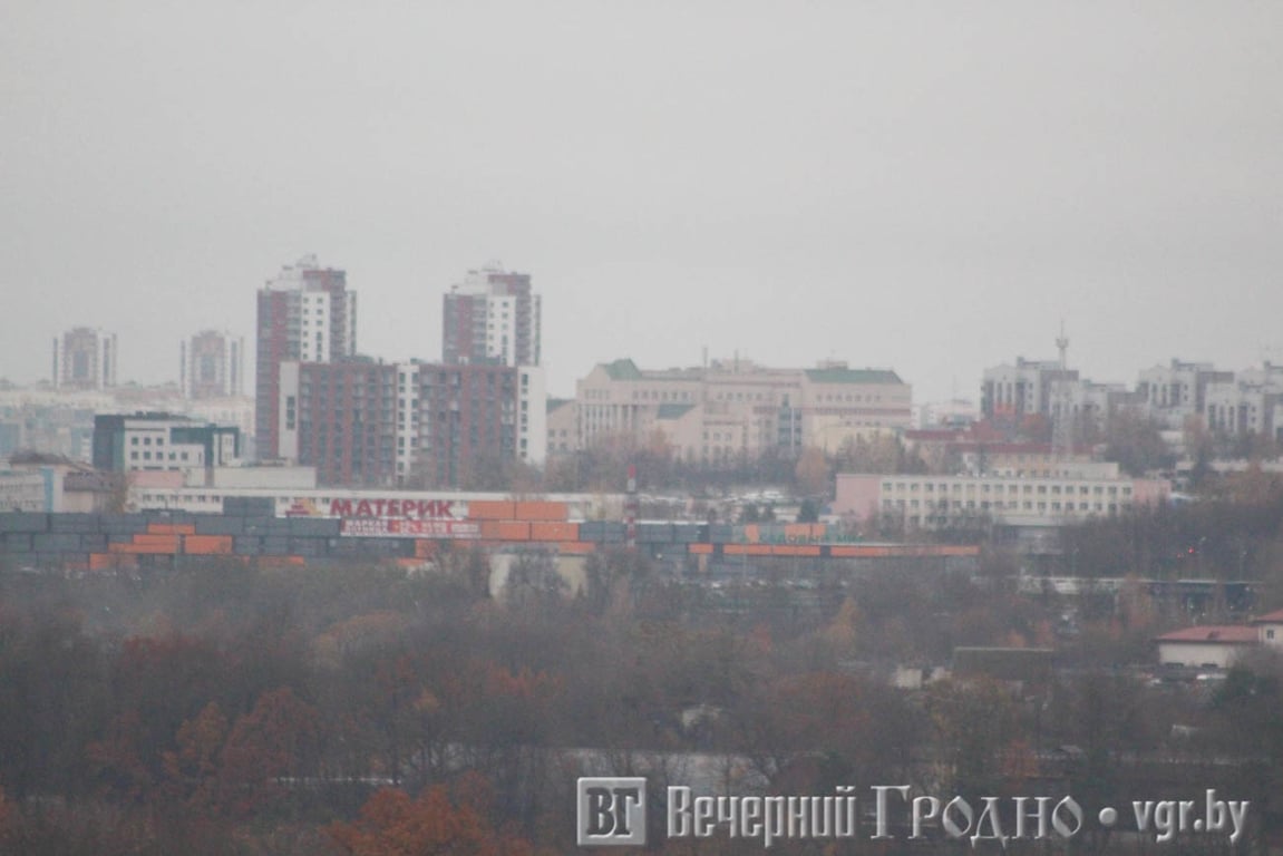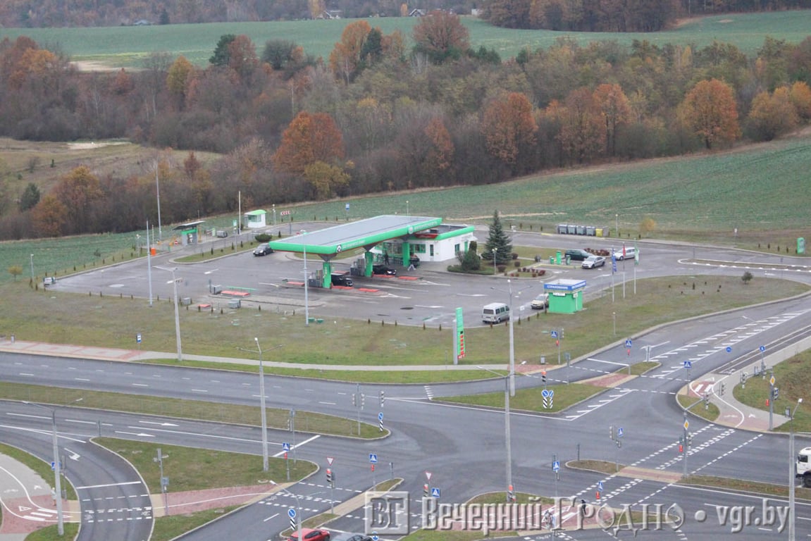 Южная часть города выглядит, как на ладони. Тут и плотная застройка спального района, и «Тринити» с необычного ракурса, и пешеходная дорожка на месте бывшей железной дороги. А если присмотреться, то можно увидеть центр Гродно с рынком и телевышкой.
