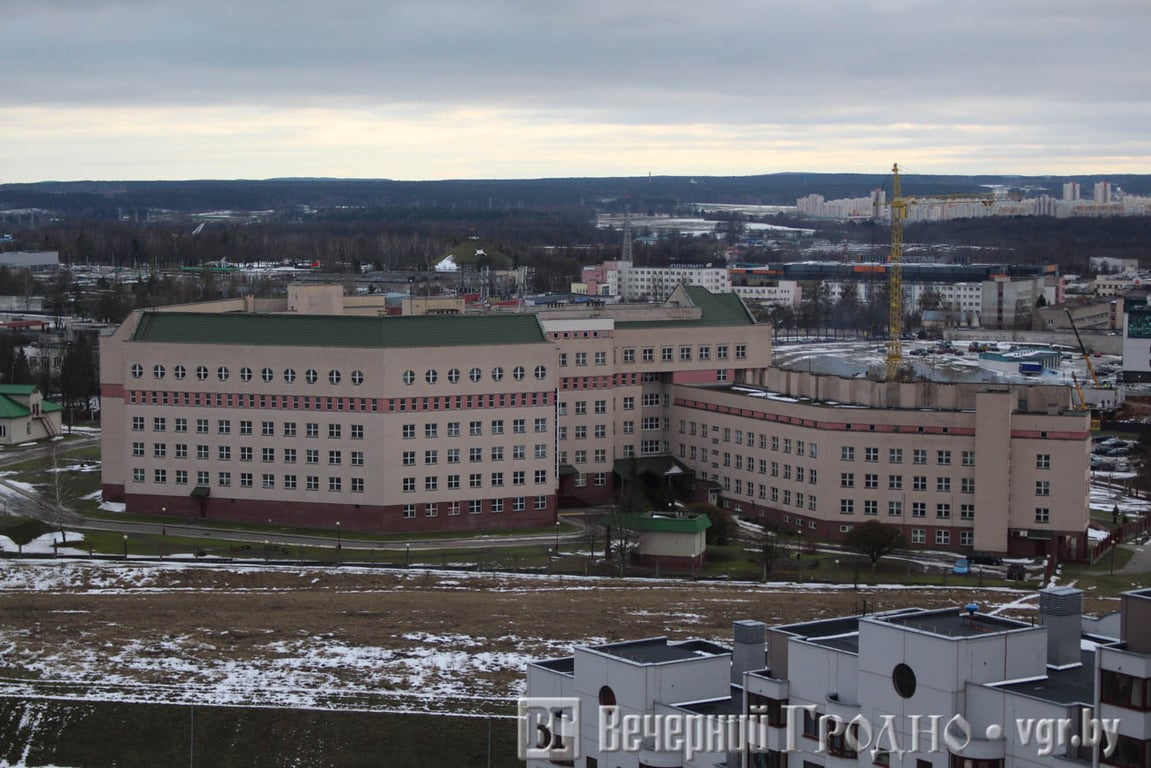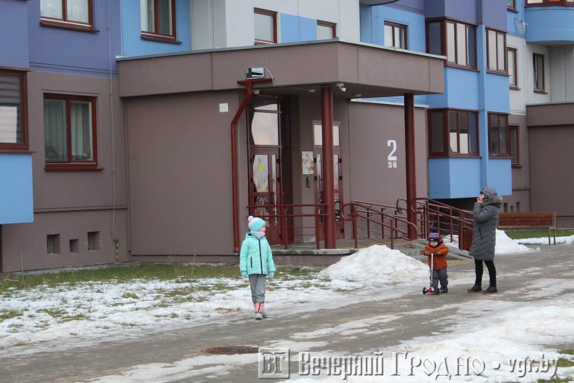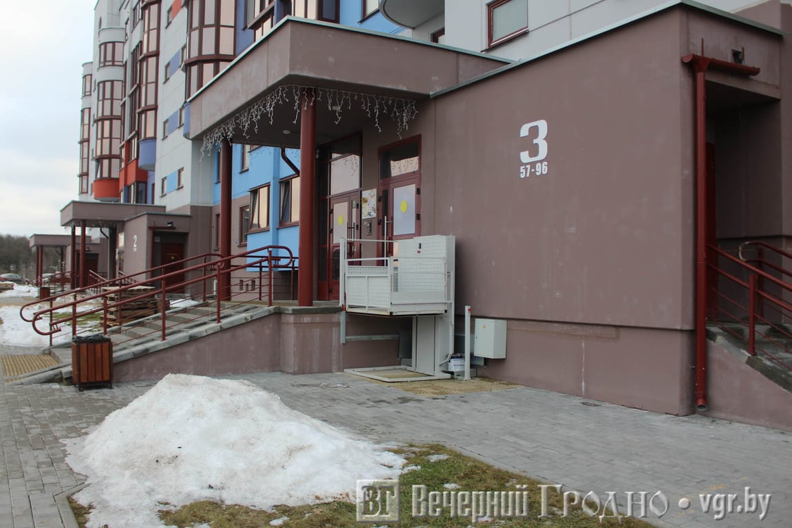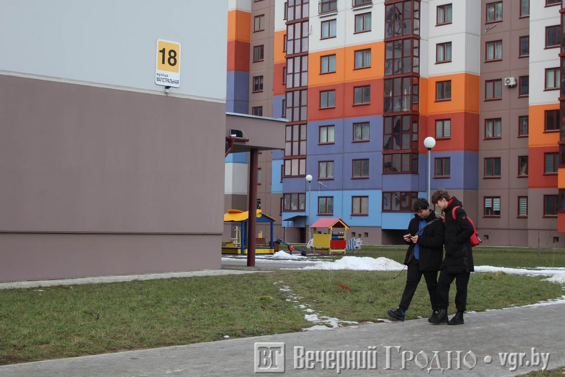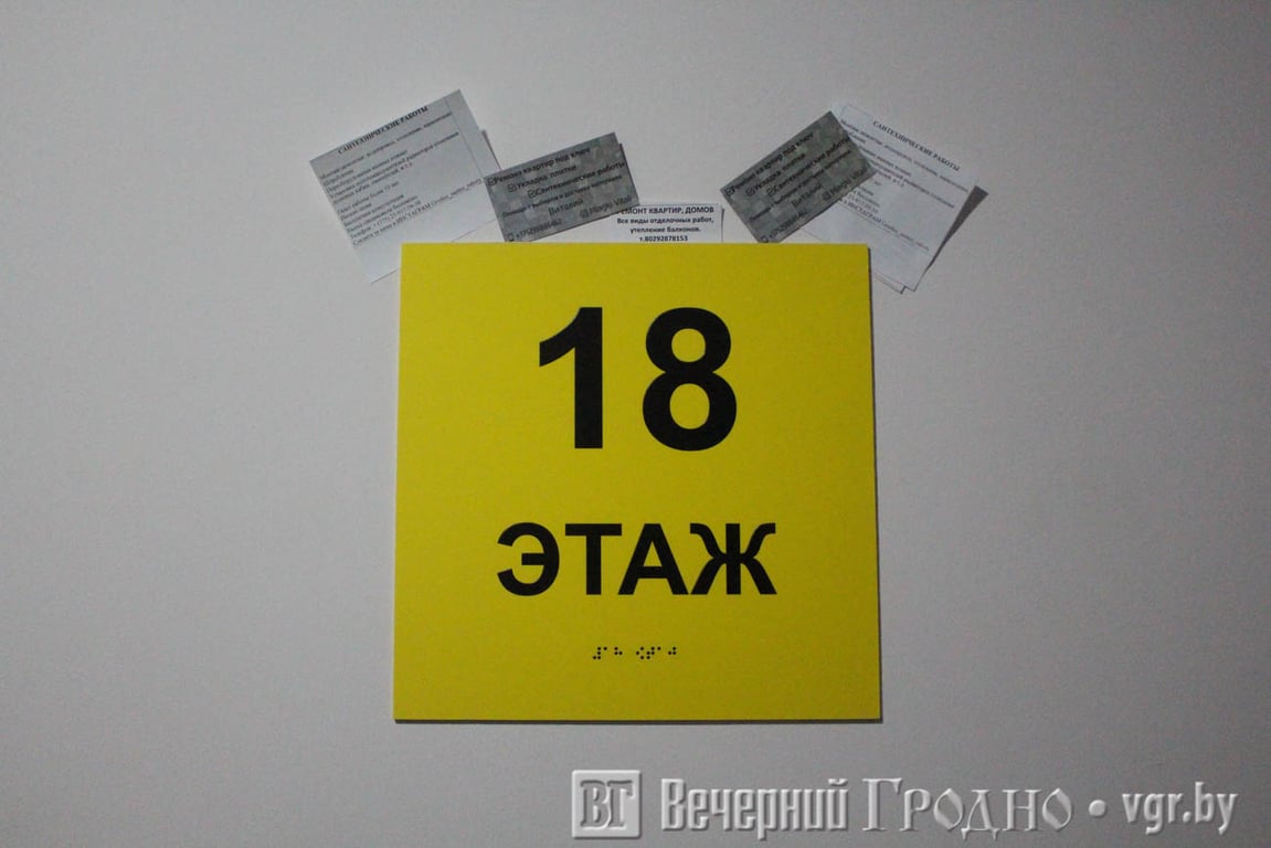 Во время своих репортажей по новым микрорайонам мы поднимаемся на верхние этажи самых высоких домов. На Магистральной это балкон 18-го этажа. С первого по последний этаж лифт едет ровно минуту. Все это время играет спокойная музыка — до этого музыкальных лифтов в Гродно еще не доводилось видеть.