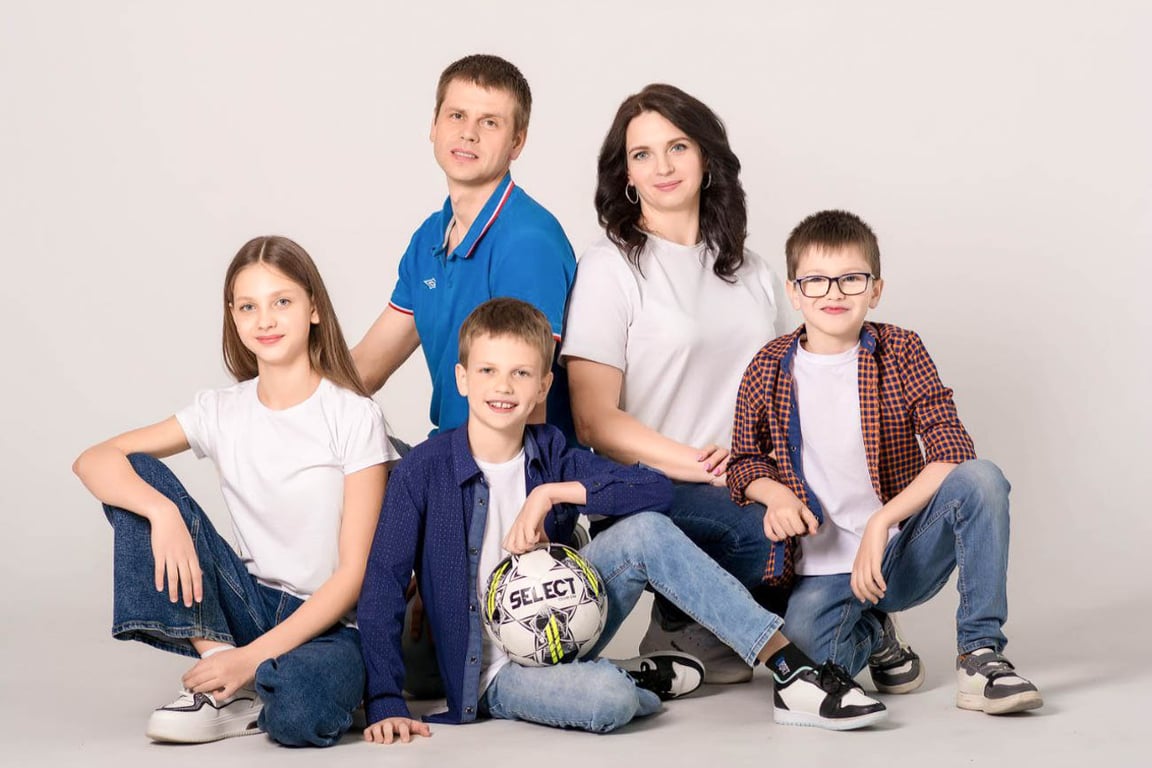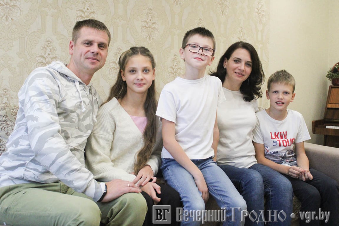 Ольга — ремесленница, делает декор из гипса, варит мыло и свечи, Владимир сейчас работает в частной транспортной компании. Старшей Ксюше — 13 лет, она играет на фортепиано, поет и посещает курсы актерского мастерства. Девочка занимается чирлидингом: их команда — чемпион Беларуси, первое место заняла и на международном чемпионате в Москве. Мечтает завести шпица. Никите — 11, он профессионально увлекается футболом и ходит на кружок по программированию. В семье он главный по технике — и что надо подключит, и родителей научит пользоваться. Младший Даник, ему 9, занимается плаванием, любит шахматы и футбол. Время у детей буквально расписано по минутам. Когда столько кружков, уследить за всем сложно — помогает график, который семья составляет на неделю.