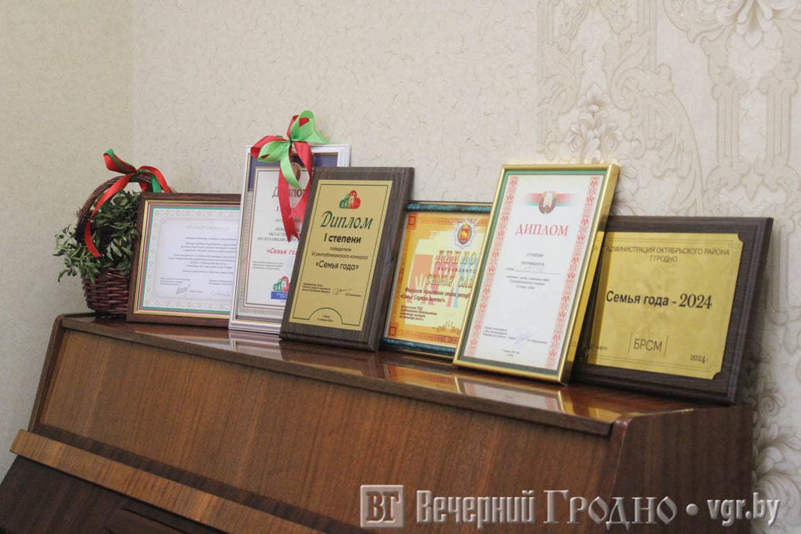 К слову, в конкурсе «Семья года» гродненская семья тоже побеждает впервые. Главный диплом в своей жизни Савчуки бережно хранят дома вместе с другими наградами и совместной фотографией.