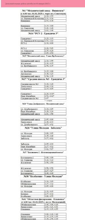 А с пяти утра 1 января будет сокращено количество рейсов на автобусных и троллейбусных маршрутах, а также маршрутных такси, сообщает КУП «Гродненский городской Оператор пассажирских перевозок».