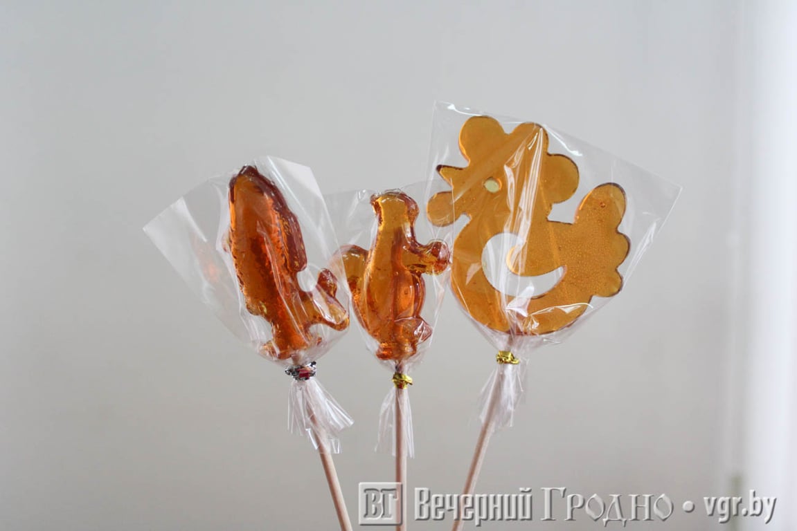 — Эти фигуры очень большие. Их нужно хранить под стеклом или в специальных колбах. Для них сложно найти упаковку, — говорит мастерица. — Чем хорош изомальт: сделал что-то, не понравилось — сломал, растопил и опять готовишь. Из обычного сахара так не получится. Хотя в Гродно есть мастер, который делает красивые фигуры из сахара. Тоже хочу научиться этому мастерству.