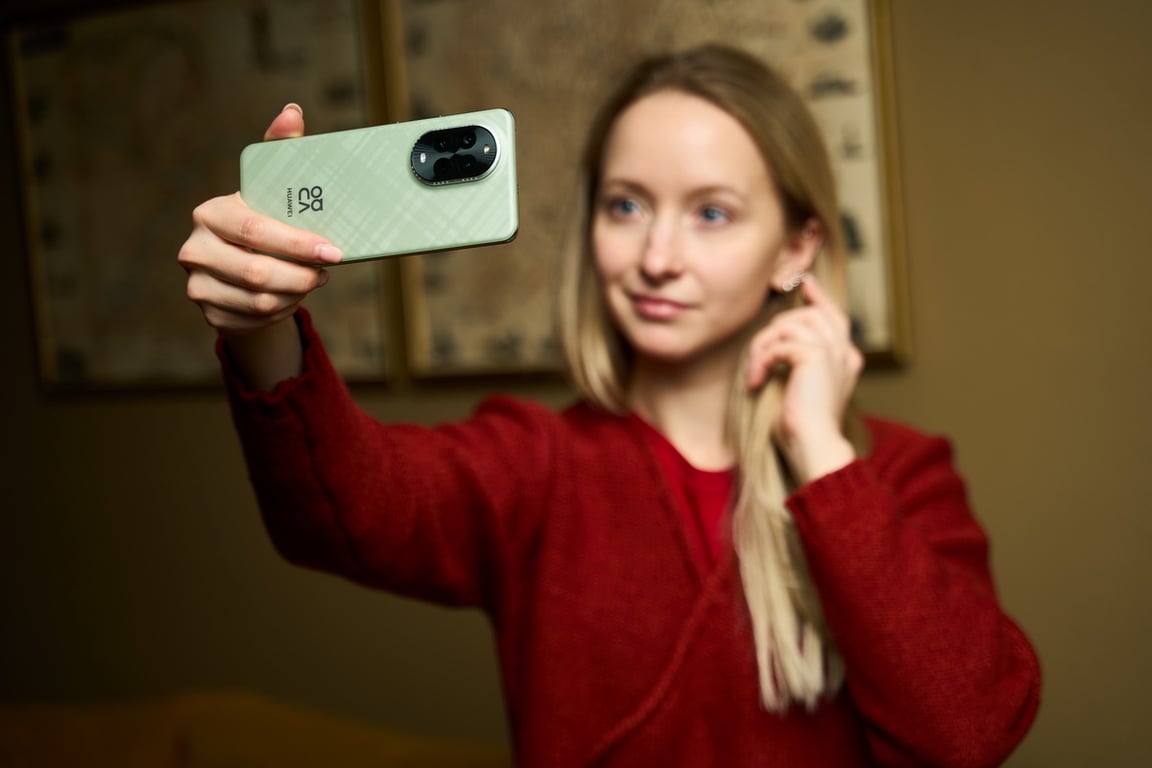 У Huawei nova 13 Pro спереди есть дополнительный портретный модуль на 8 МП, что обеспечивает широкий диапазон зума (0,7x-5x) и позволяет сосредоточиться на отдельных чертах лица или элементах макияжа.