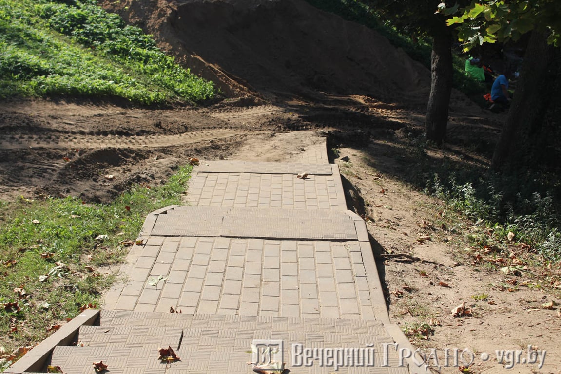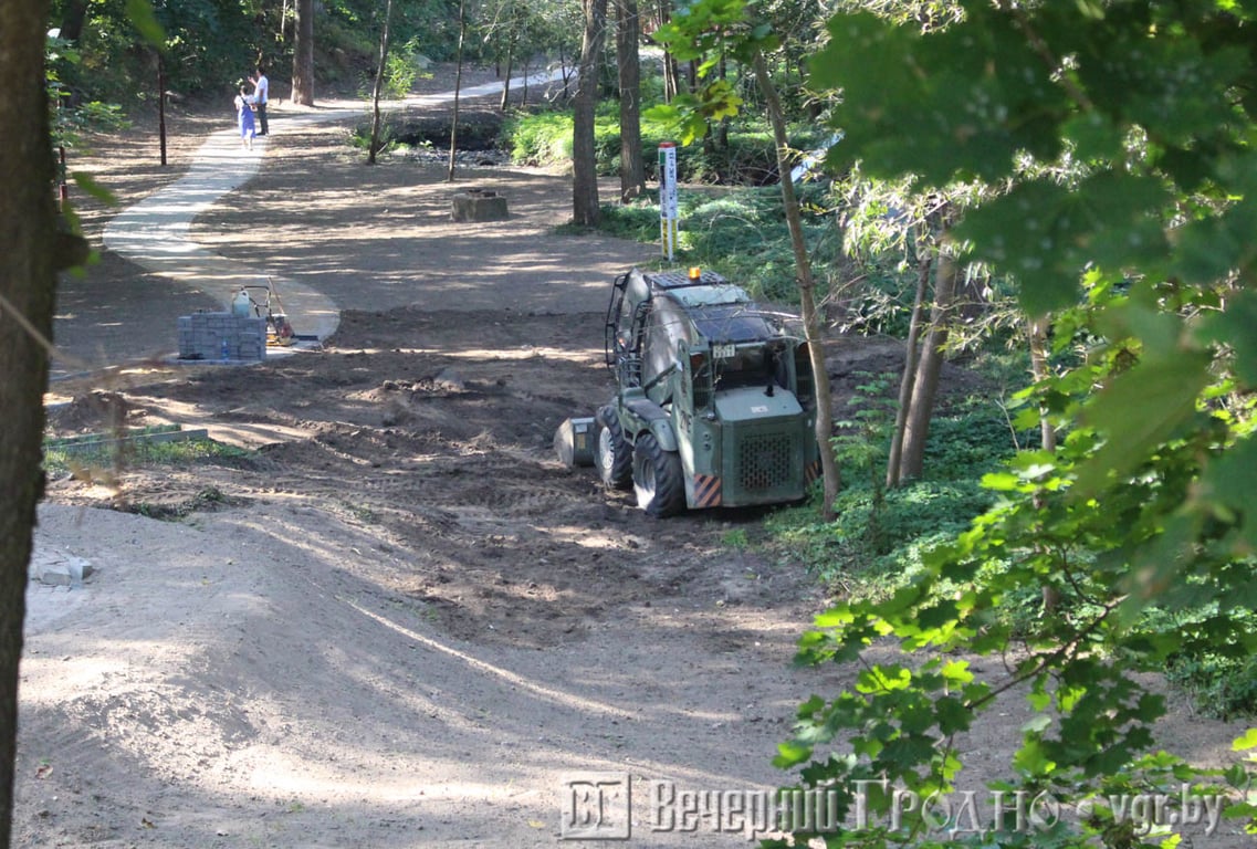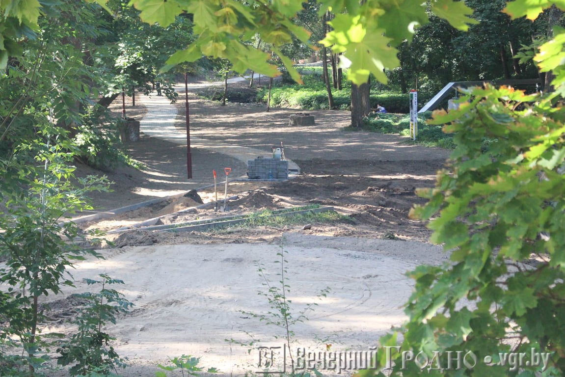 Мы посчитали, что протяженность дорожки составляет около 700 метров. На этом пути гродненцы и гости города могут отдохнуть в беседках, увидеть солнечные часы, мосты, водопады и различные скульптуры. И все это в центре города!