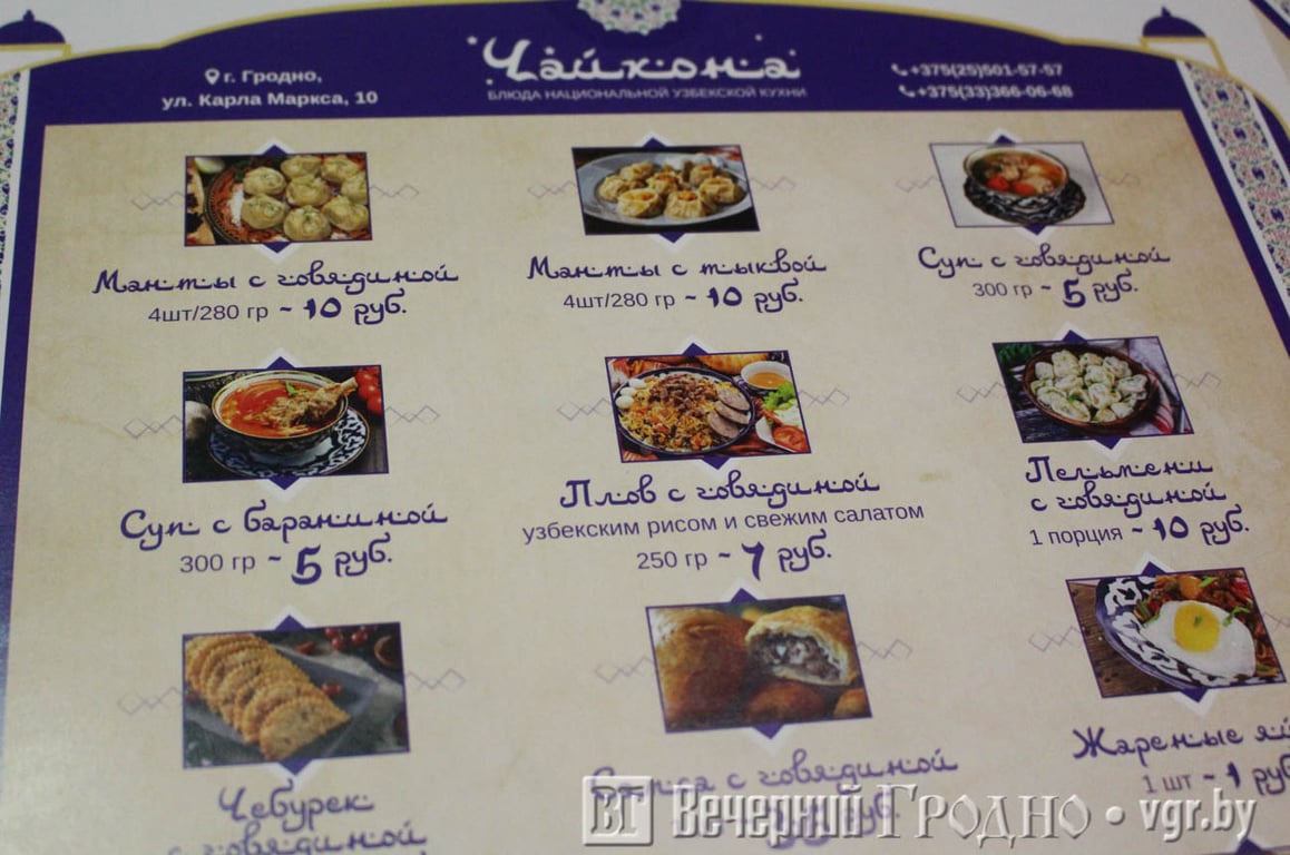 Это первое в Гродно заведение с блюдами стран Средней Азии. Идея познакомить гродненцев с азитской кухней принадлежит семейной паре Фуркату и его супруге Маужуде.