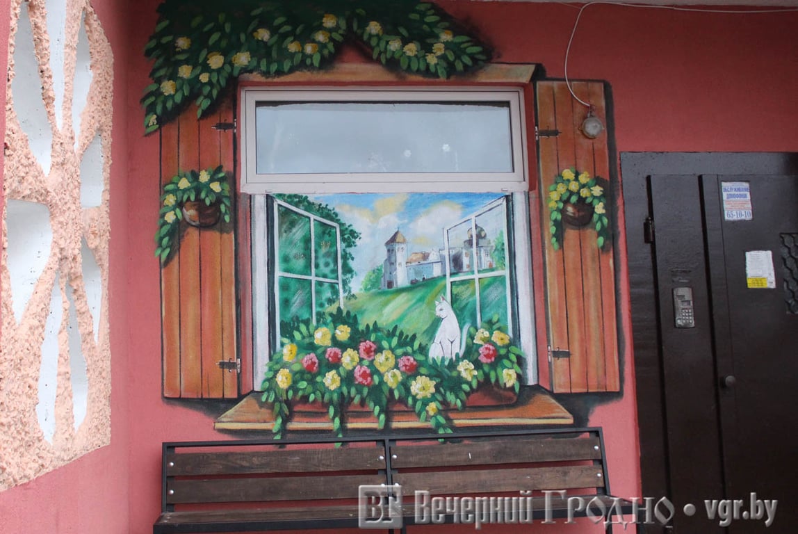 В итоге красочные работы появились на подъездах домов №8, №10, №22, №46 и №48. Птицы, букеты цветов, вечерний город, окно с видом на драмтеатр и Старый замок появились на обычных стенах. Невозможно пройти и не заметить яркие рисунки.