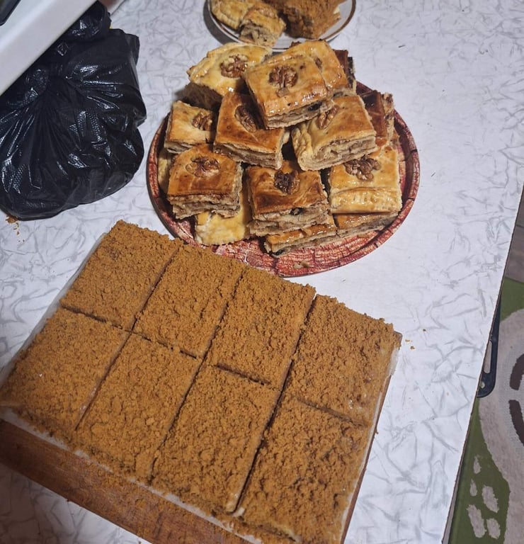 Появилась в заведении выпечка. Чак-чак стоит 2 рубля, круассан со сгущенкой 3 рубля, пахлава 4 рубля.