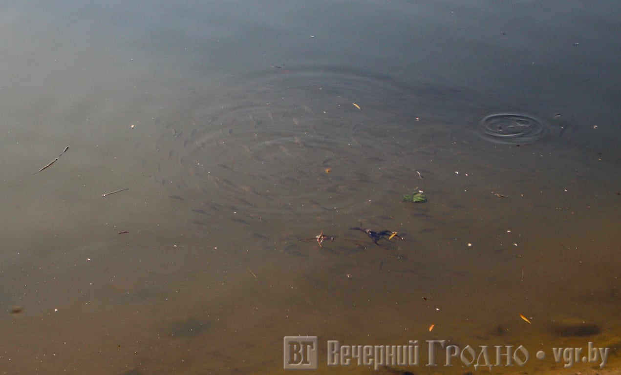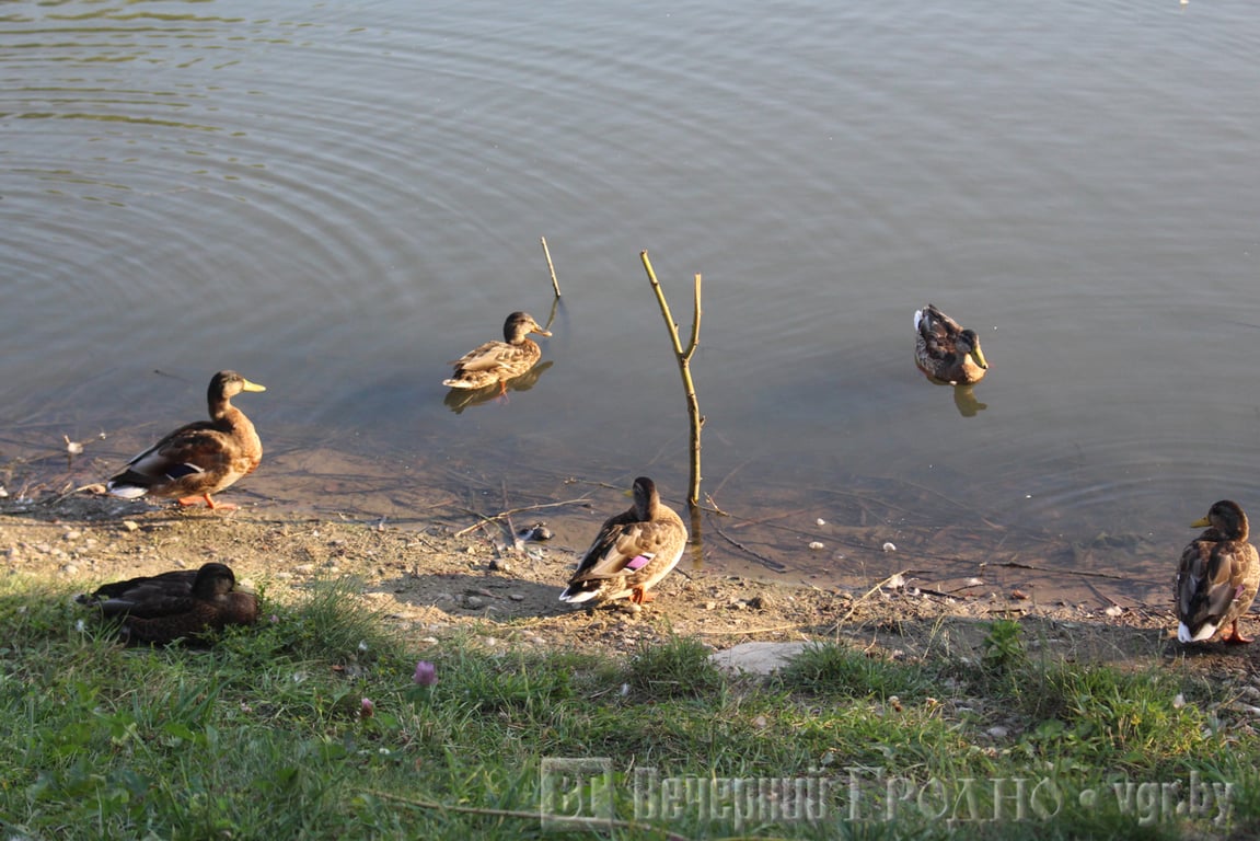 Читатель говорил нам, что пруд сильно обмелел. Мы, признаться честно, этого не увидели. К тому же в жару понижение уровня воды обычное дело. Утки на месте, косяки рыбы тоже.