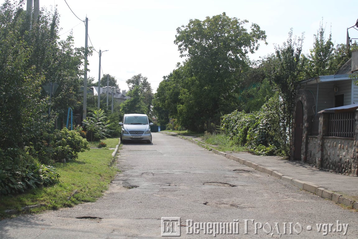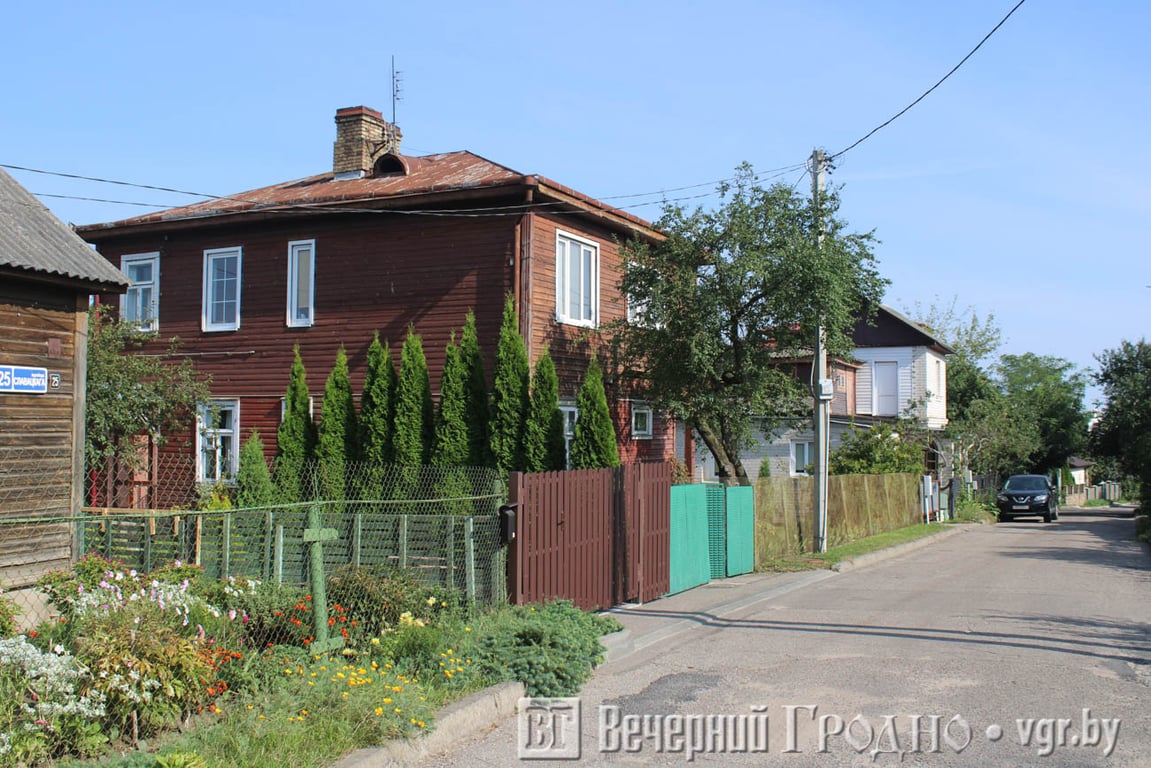 В начале улицы — высокий деревянный зеленый дом, говорят, какого-то купца, которому принадлежал здесь целый квартал. Позже этого купца раскулачили. Как написано в книге «Бiяграфiя гарадзенскiх вулiц. Ад Фартоў да Каложы», предположительно, был построен до Первой мировой войны и сильно реконструирован в 30-е годы.