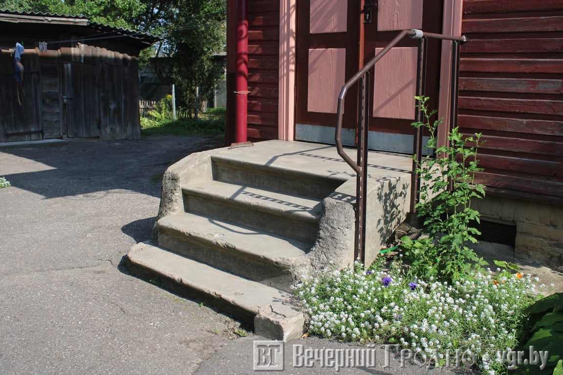 Большой деревянный дом в стиле конструктивизма в форме куба построил ее дедушка в 1935 году, хотя в паспорте указан 1937-й. Сначала думали возводить только один этаж, главный вход должен был размещаться с противоположной стороны. Он, кстати, сохранился, но им сейчас не пользуются. Но когда у деда родилась еще одна дочка, он достроил второй этаж. С тех пор в хорошем состоянии сохранились старинные оконные проемы, двери, кирпичный подвал, кованые перила, козырек и даже железный скребок для снятия грязи с обуви.