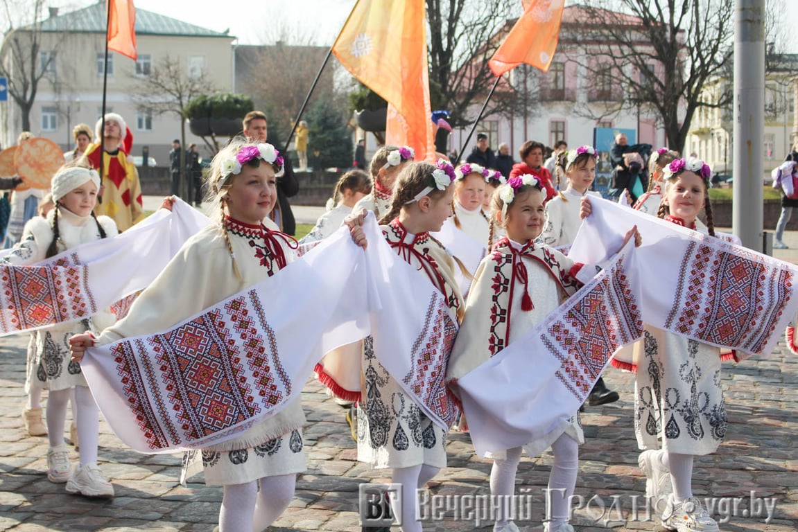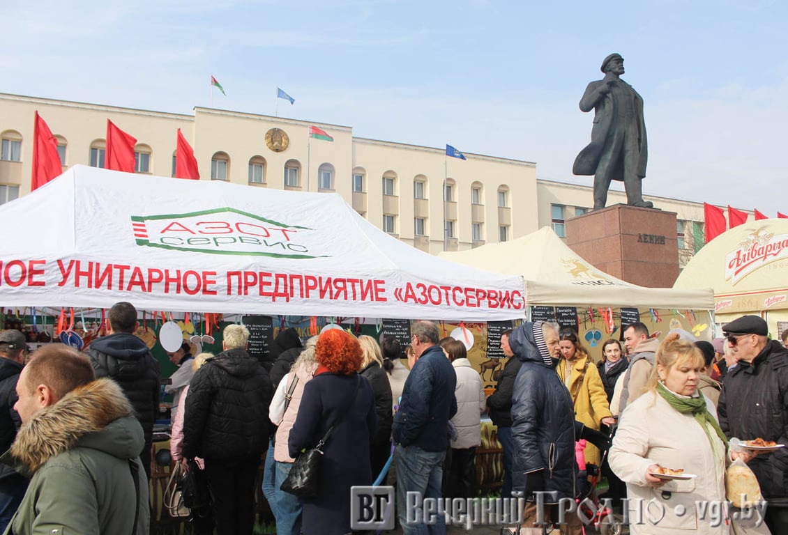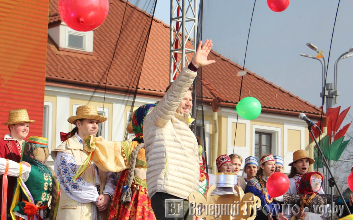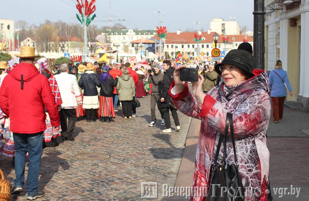 Финишировала колонна на площади Ленина. Здесь же, на главной сцене, устроили театрализованное представление и открыли фестиваль. Завершилась официальная часть программы масленичным хороводом, который собрал несколько десятков гродненцев.