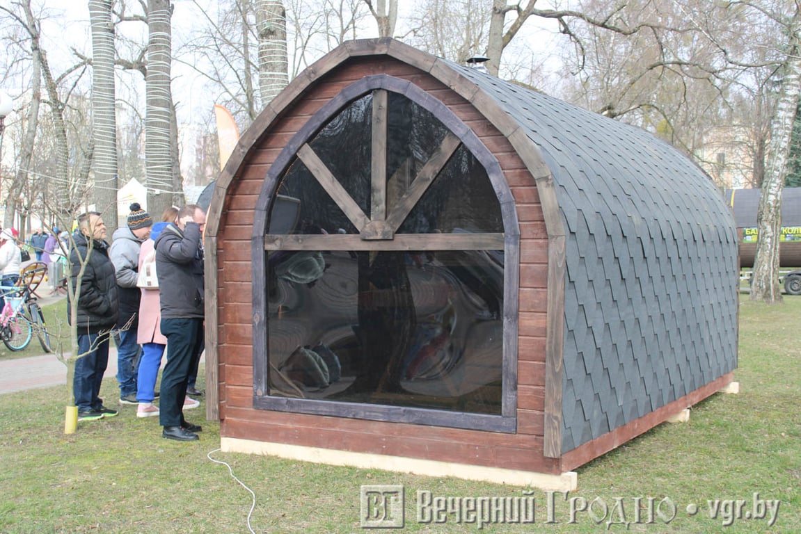 В парке Жилибера впервые открылась… баня. Бесплатный передвижной банный комплекс привезли предприниматели из Островца. По их словам, сборка одной такой бани под ключ занимает до двух месяцев — все зависит от погоды. Стоимость подобных конструкций разная: к примеру, баня-бочка длиной 3 метра с парной и комнатой обойдется в сумму более 6 350 рублей.