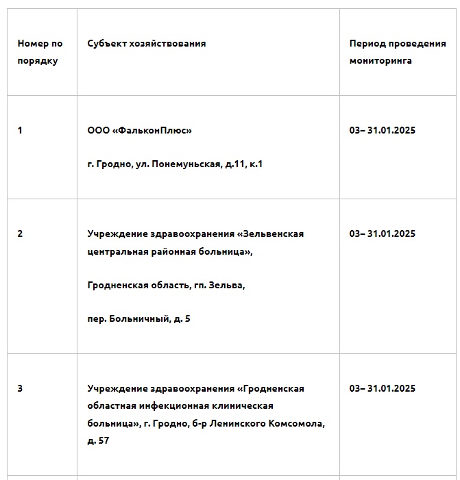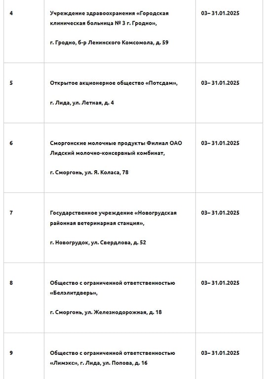 В списке 9 организаций из Гродно, Лиды, Сморгони, Новогрудка и Зельвы.