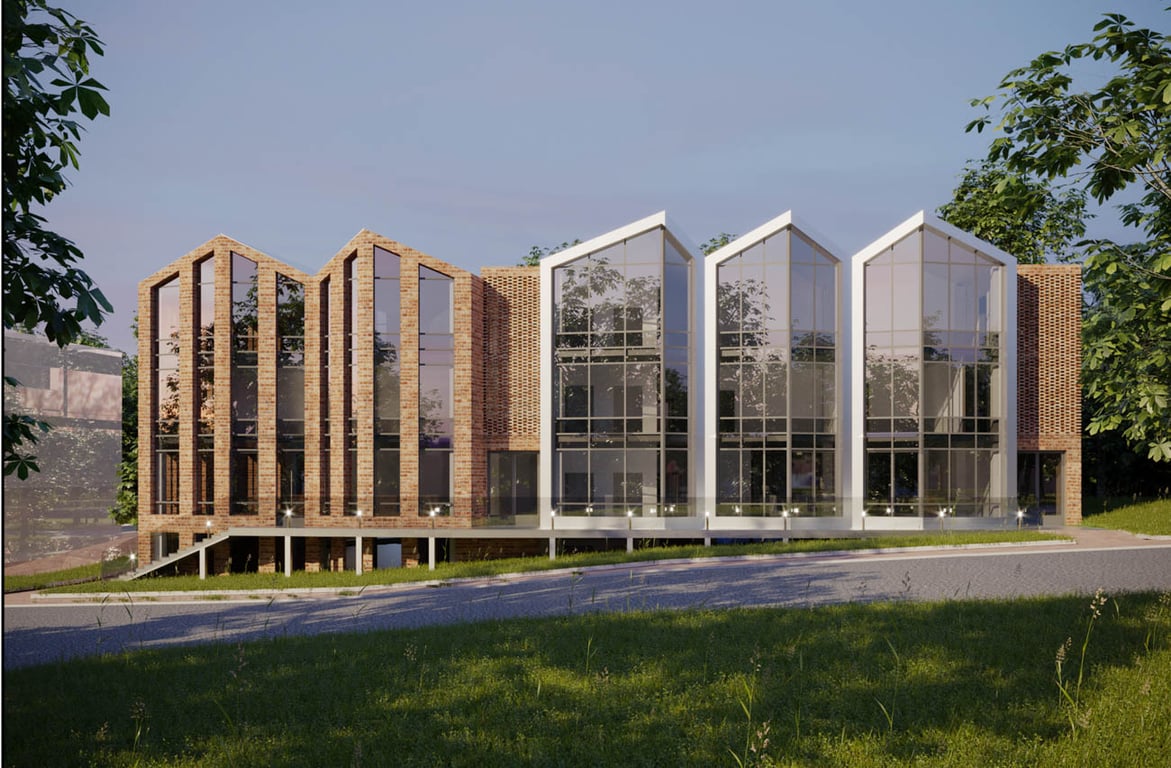 По проекту, новое здание будет трехэтажным, фасад облицуют клинкерным кирпичом, смонтируют стеклянные витражи. В новостройке предусмотрены 16 офисных помещений, 14 из них, к слову, уже проданы. Остались два на третьем этаже. Общая площадь постройки составит около двух тысяч кв. м.