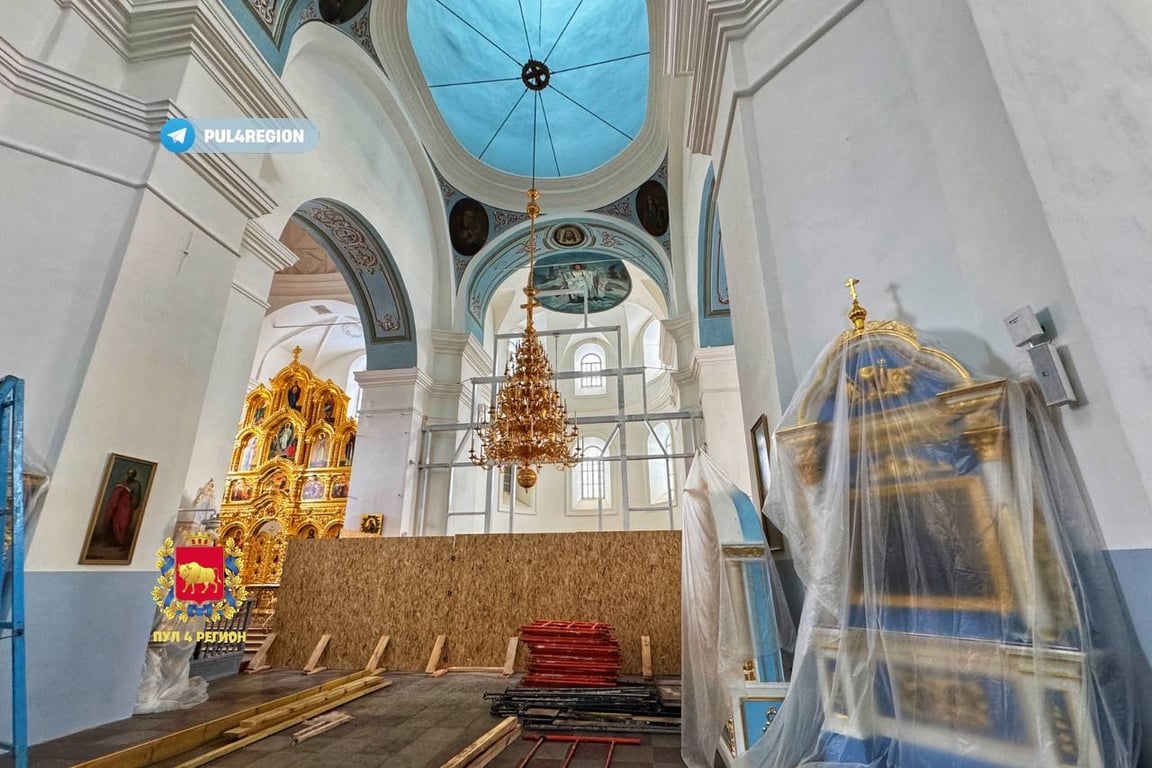 Как сообщает телеграм-канал «Пул 4 Регион», в рамках посещения Свято-Успенского Жировичского ставропигиального мужского монастыря Юрий Караев ознакомился с ходом строительных работ по реконструкции Явленской церкви, которая планируется к сдаче 15 апреля, а также Георгиевской церкви.