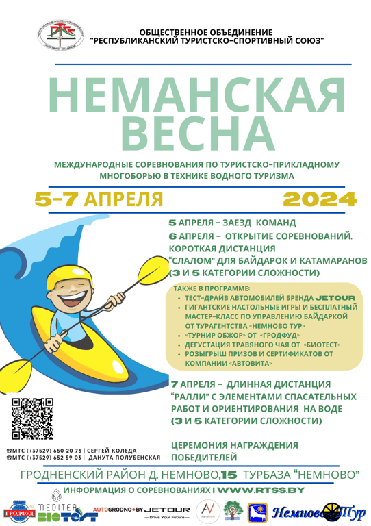 В 49 раз «Неманская весна» соберет профессионалов и любителей туристско-прикладного многоборья для участия в личном и групповом зачетах в соревнованиях на байдарках, каноэ, каяках и катамаранах.