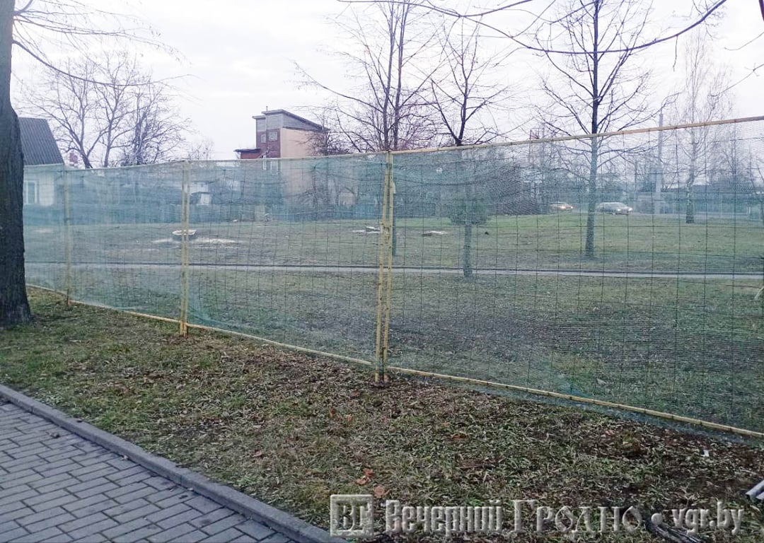 Рабочие выставили ограждение на небольшом участке с газоном рядом с рекламными щитами. Здесь появится ресторан известной сети фастфуда KFC.