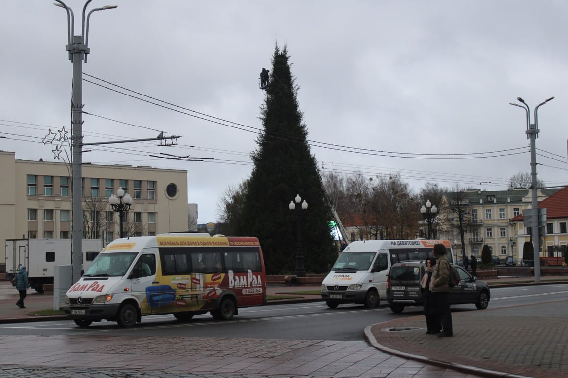 После этого новогоднюю красавицу украсят гирляндой и игрушками. А над площадью, как и в прошлые годы, растянут звездное небо.