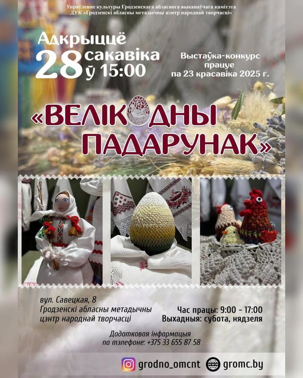 Гродненский областной методический центр народного творчества сообщает об открытии выставки «Велікодны падарунак».