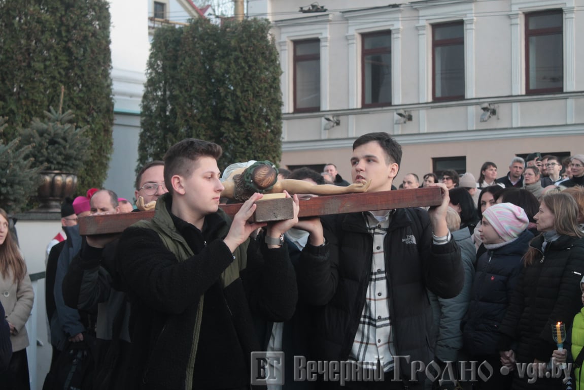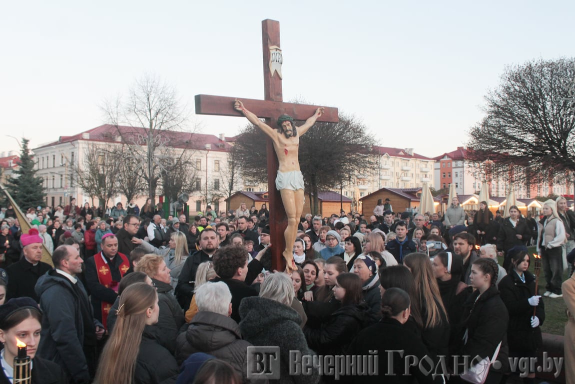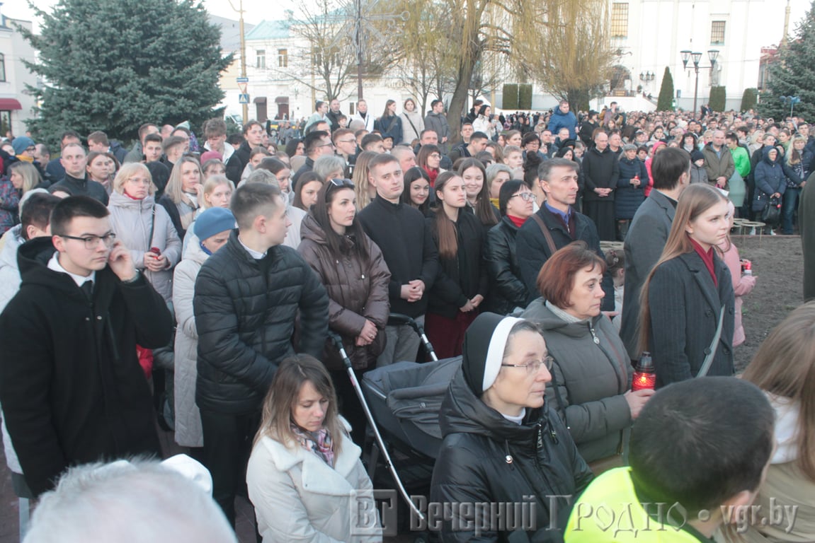Процессия стартовала от Фарного костела и шла до Бернардинского костела на улице Парижской Коммуны. Люди несли крест с распятием Христа, многи взяли с собой свечи и лампадки.
