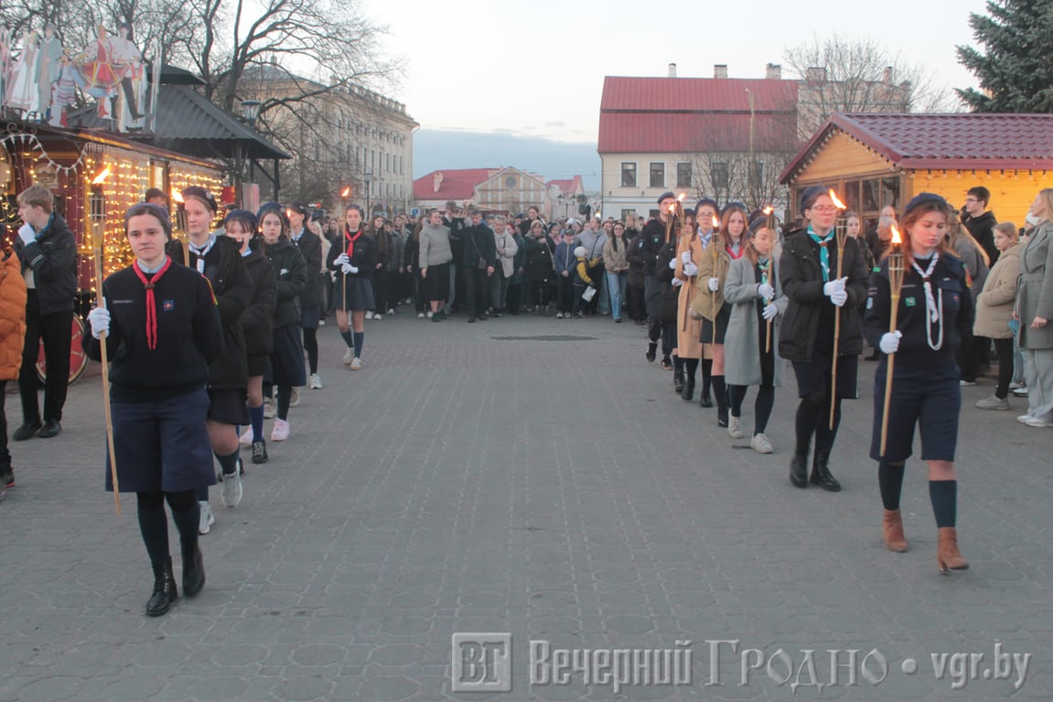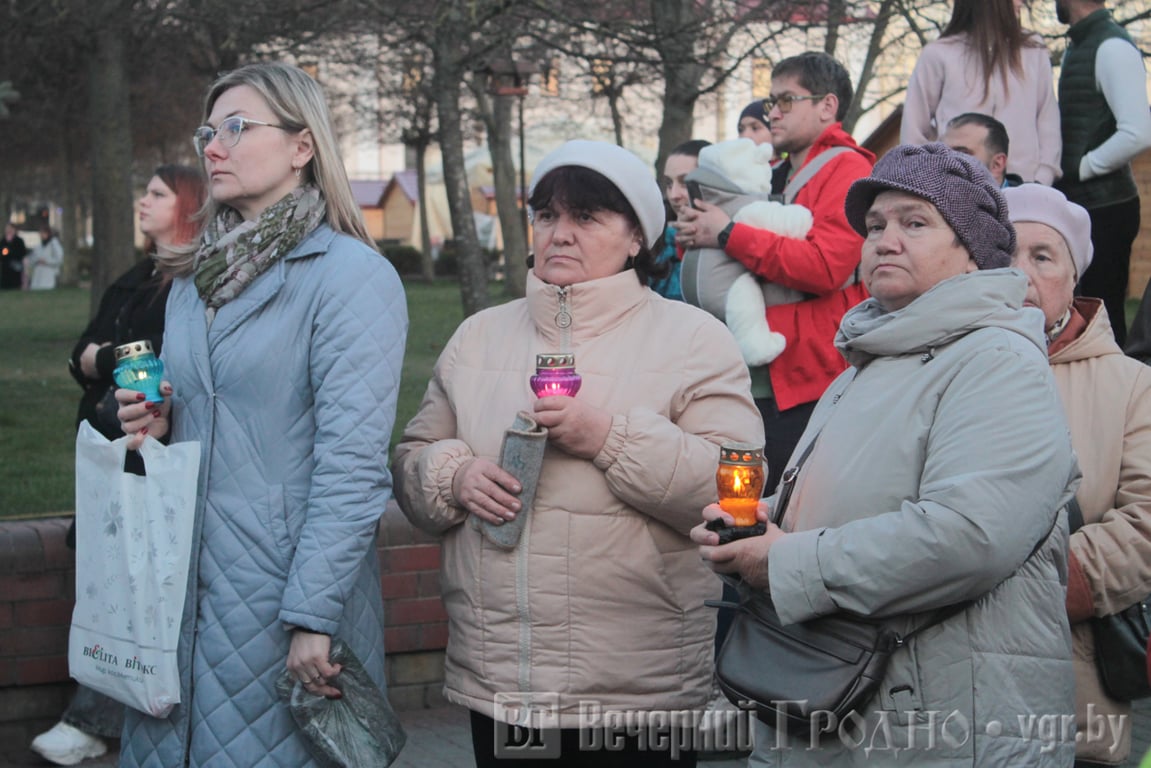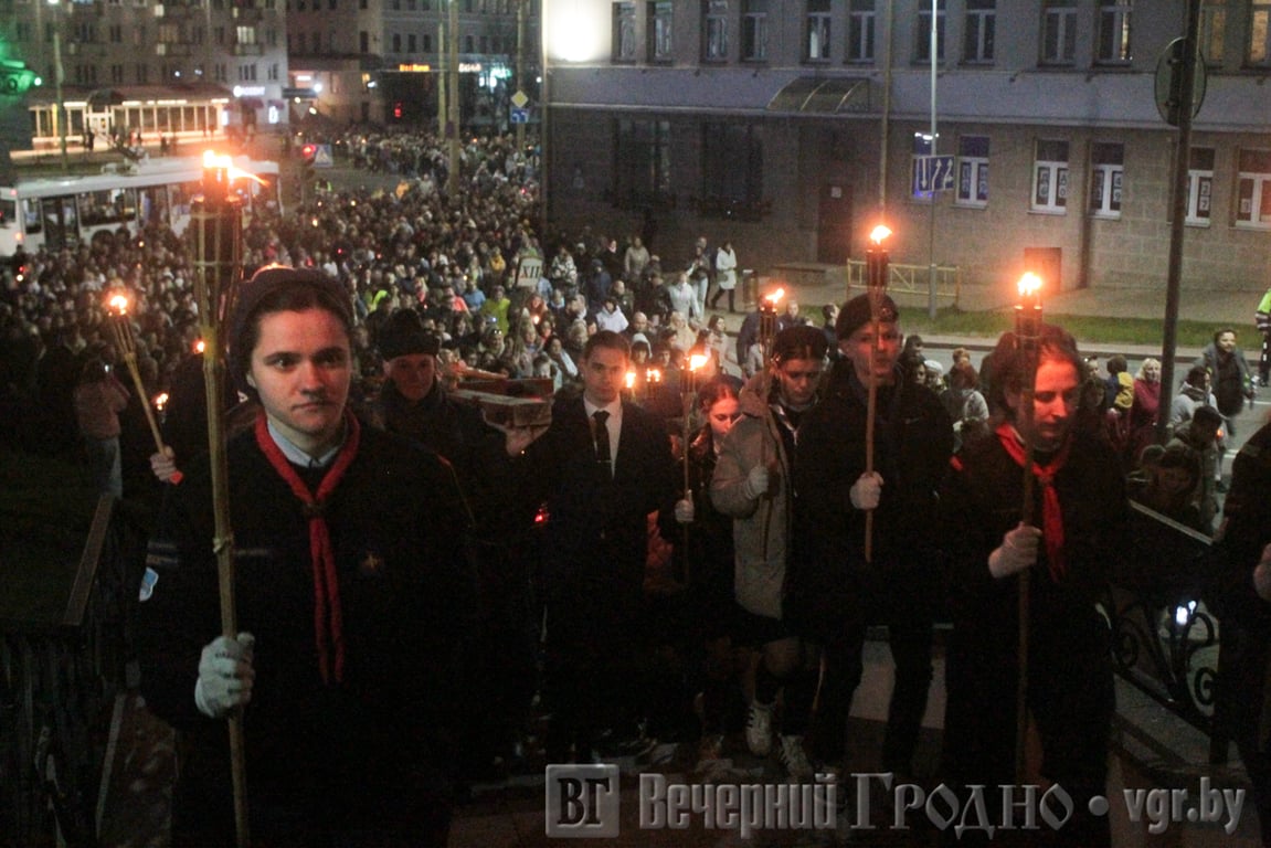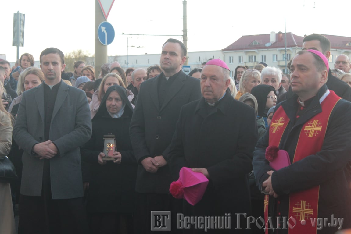 Процессия стартовала от Фарного костела и шла до Бернардинского костела на улице Парижской Коммуны. Люди несли крест с распятием Христа, многи взяли с собой свечи и лампадки.