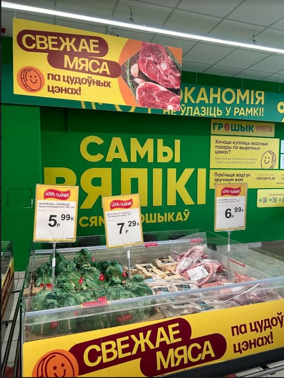 В Беларуси сейчас работают свыше 100 магазинов «Грошык». Сеть представлена форматом жестких дискаунтеров. Низкие цены обеспечивают большие объемы закупок, продуманная логистика, минимизация расходов на персонал и упрощенная выкладка товаров.