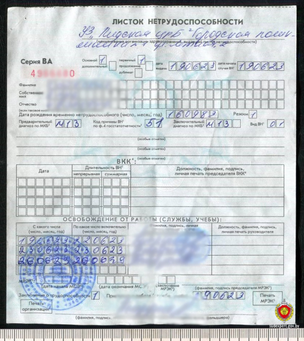 Об этом сообщили в Лидский РОВД. Правоохранители изъяли больничный лист и направили в Лидский межрайонный отдел Государственного комитета судебных экспертиз для проведения судебной технической экспертизы документов.