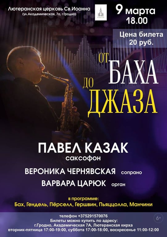 9 марта пройдет концерт «От Баха до джаза», где удивительное сочетание органа, саксофона и вокала представят самые известные страницы музыкальной истории. Прозвучат знаменитые произведения Баха, Генделя, Пёрселла и Каччини, а легкое, приподнятое настроение создадут композиции Гершвина, Пьяццоллы, Манчини и других композиторов.