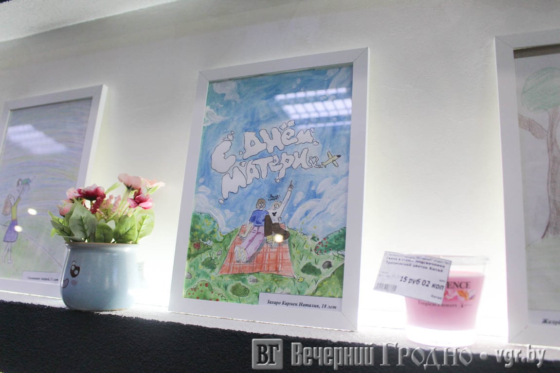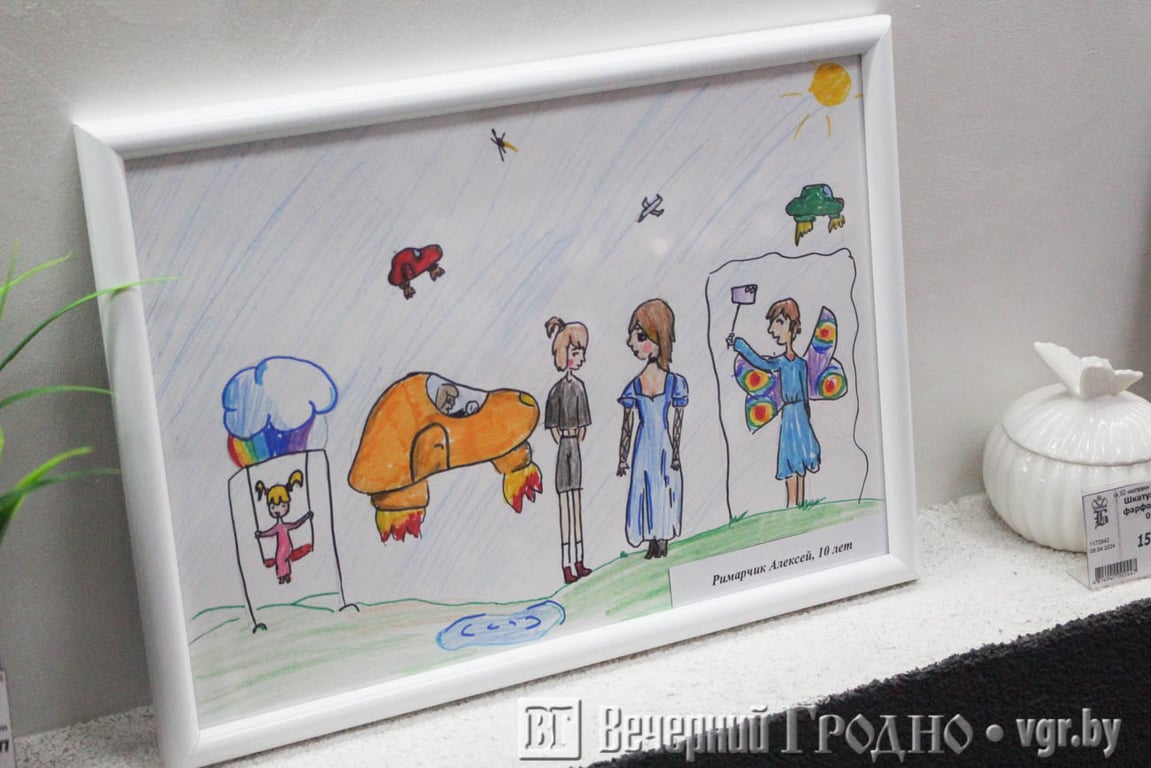 Сейчас здесь открылась выставка детских рисунков, посвященная неделе родительской любви. Как рассказали в организации, рисунки сделаны детьми из многодетных семей, чьи родители работают в «ГродноТоргСервисе», а также молодых специалистов и детей подшефной семьи Кузьминых.