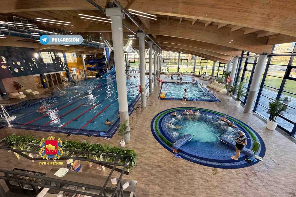 ФОК включает водотермальную зону с тремя бассейнами (4 дорожки по 25 метров для оздоровительного плавания, мини-бассейны для обучения плаванию детей от 1 до 4 лет, от 10 до 14 лет), джакузи, три сауны (русская, финская, турецкая), элементы аквапарка (одна винтовая и две скатные горки), тренажерный и два фитнес-зала.