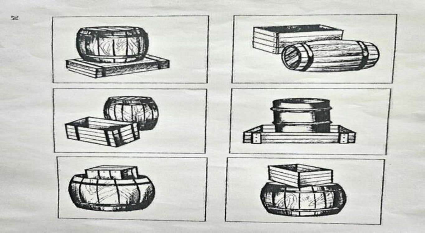 Либо попросить указать на рисунке: «ящик в бочке»; «ящик на бочке»; «бочку в ящике»; «ящик перед бочкой»; «бочка за ящиком».