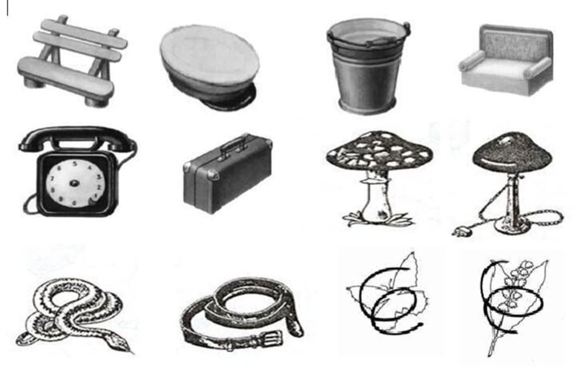 Тест 8. Показать картинки со схожим изображением. Например, гриба и лампы. Человек с болезнью Альцгеймера не увидит их отличие. Если сложно назвать изображение, то следует также спросить назначение предмета и к какой категории предметов он принадлежит (мебель, пища и т. п.).