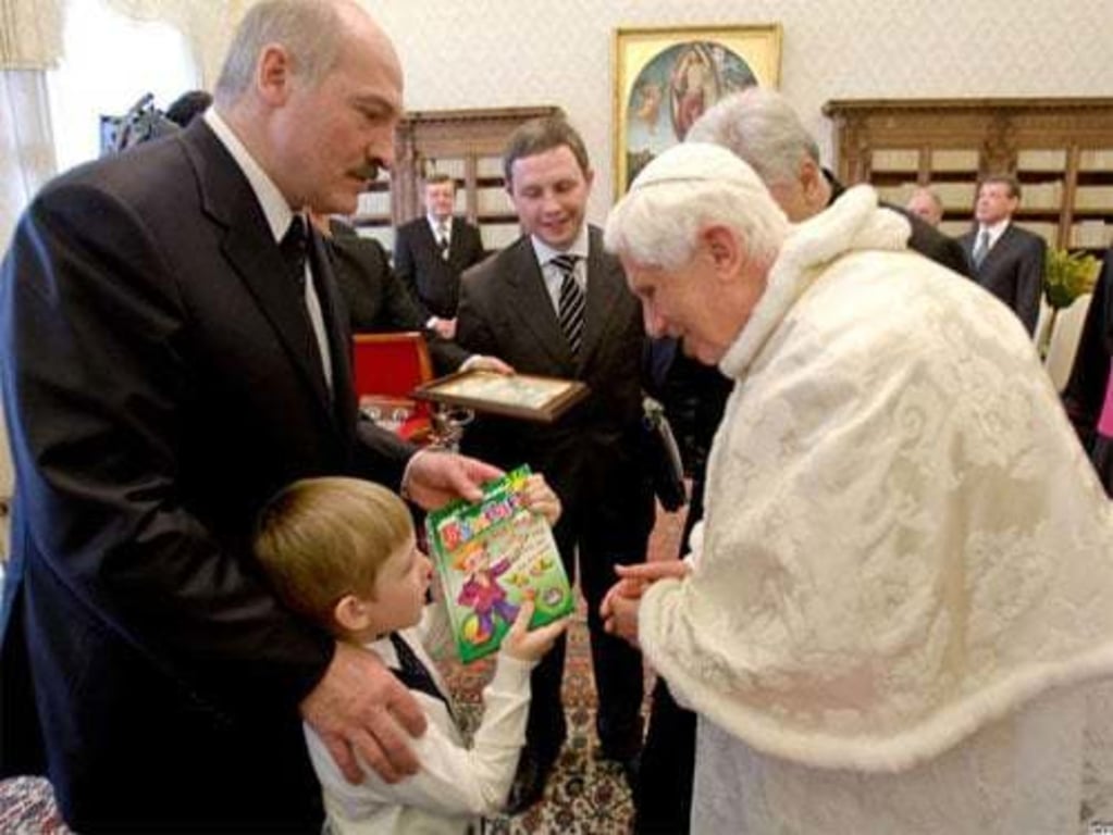 Широкой публике тот визит запомнился моментом, когда Коля, младший сын Лукашенко, подарил папе Бенедикту XVI русский букварь.