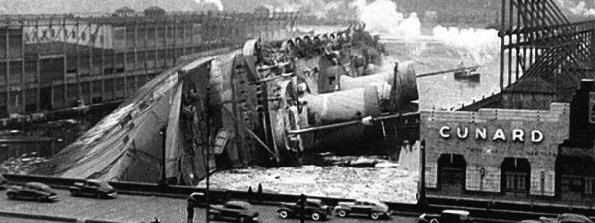 Крушение трансатлантического лайнера «Нормандия» у пирса в Нью—Йорке. 9 февраля 1942 года