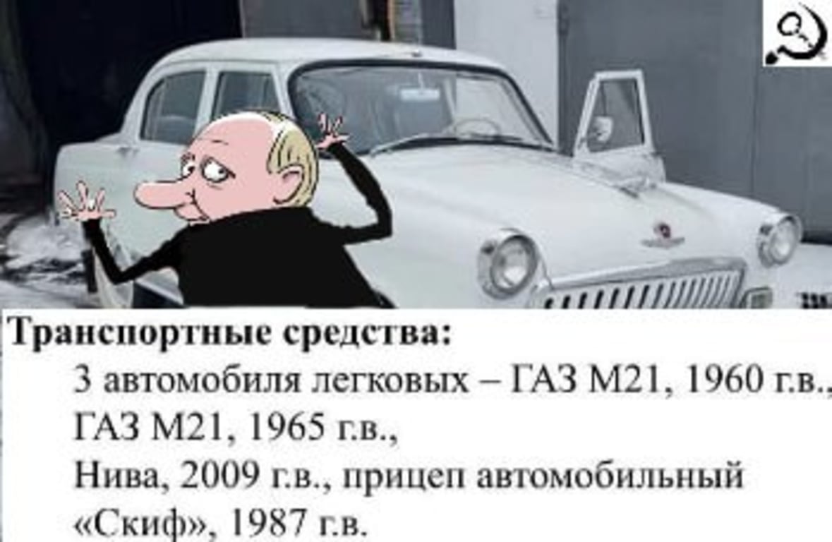 — Что-то там в путинских декларациях меняется — миллион туда, миллион туда, но раритетные «Волги» и прицеп «Скиф» (что он там возит и где держит? Неподалеку от Царь-Пушки? Два задекларированных машиноместа маловаты) от срока к сроку остаются неизменными.