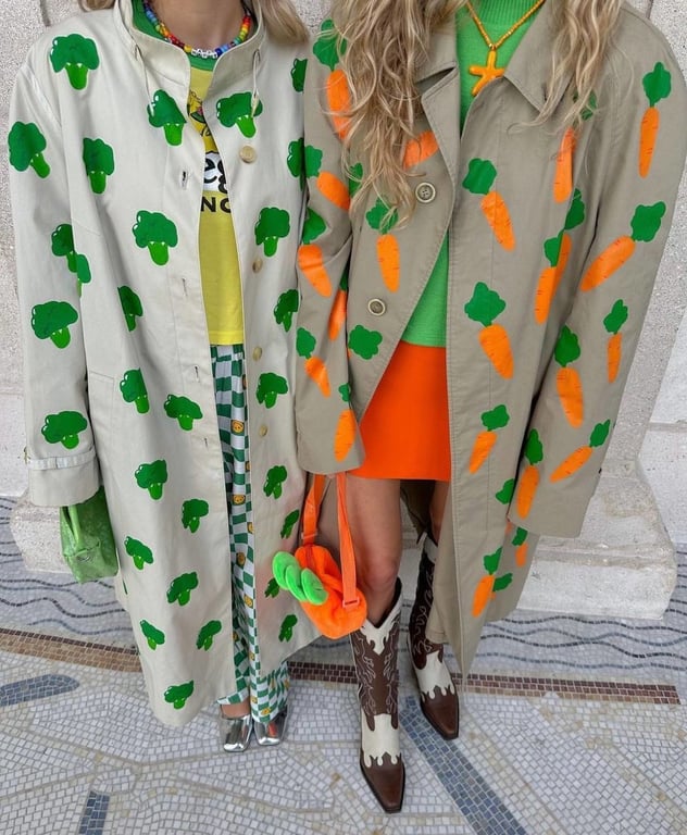В этой истории тоже, кстати, фигурирует блогер. Точнее, блогерка. Анаис ван Оекел вручную разрисовала винтажные тренчи. Как говорили во времена СССР, «два мира – два Шапиро».
