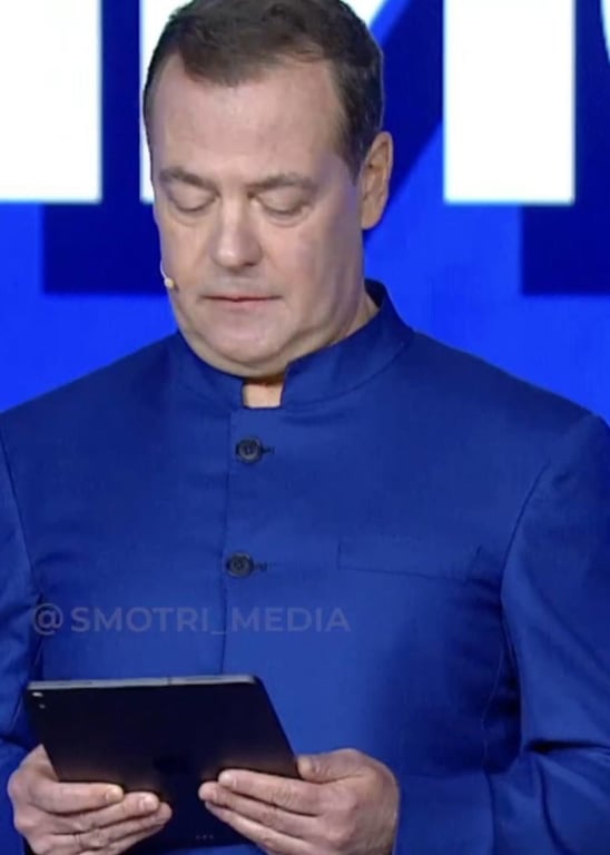 Так что Медведев, регулярно грозящий Западу кулачком, не случайно избрал такую форму одежды. Правда и тут умудрился накосячить: даже провластные блогеры съязвили насчет того, что «френч на голое пузо не надевают».